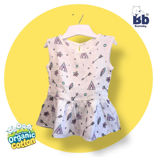 Baby Girl Organic Cotton Sleeveless Frock-Size(3M-6M)-Pack of 2-Assorted Prints 5