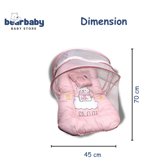 BearBaby Premium Baby Cotton Mattress Sleeping Bag with Mosquito Net & Free Pillow | Soft, Foldable Newborn Bedding Set (0–12 Months) PINK