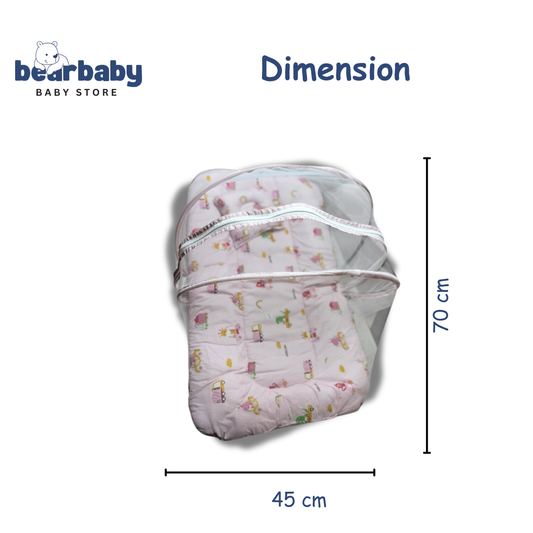 BearBaby Premium Baby Cotton Mattress Sleeping Bag with Mosquito Net & Free Pillow | Soft, Foldable Newborn Bedding Set (0–12 Months) BABY PINK