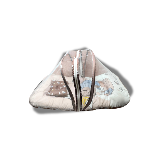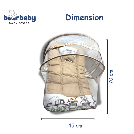 BearBaby Premium Baby Cotton Mattress Sleeping Bag with Mosquito Net & Free Pillow | Soft, Foldable Newborn Bedding Set (0–12 Months) BEIGE