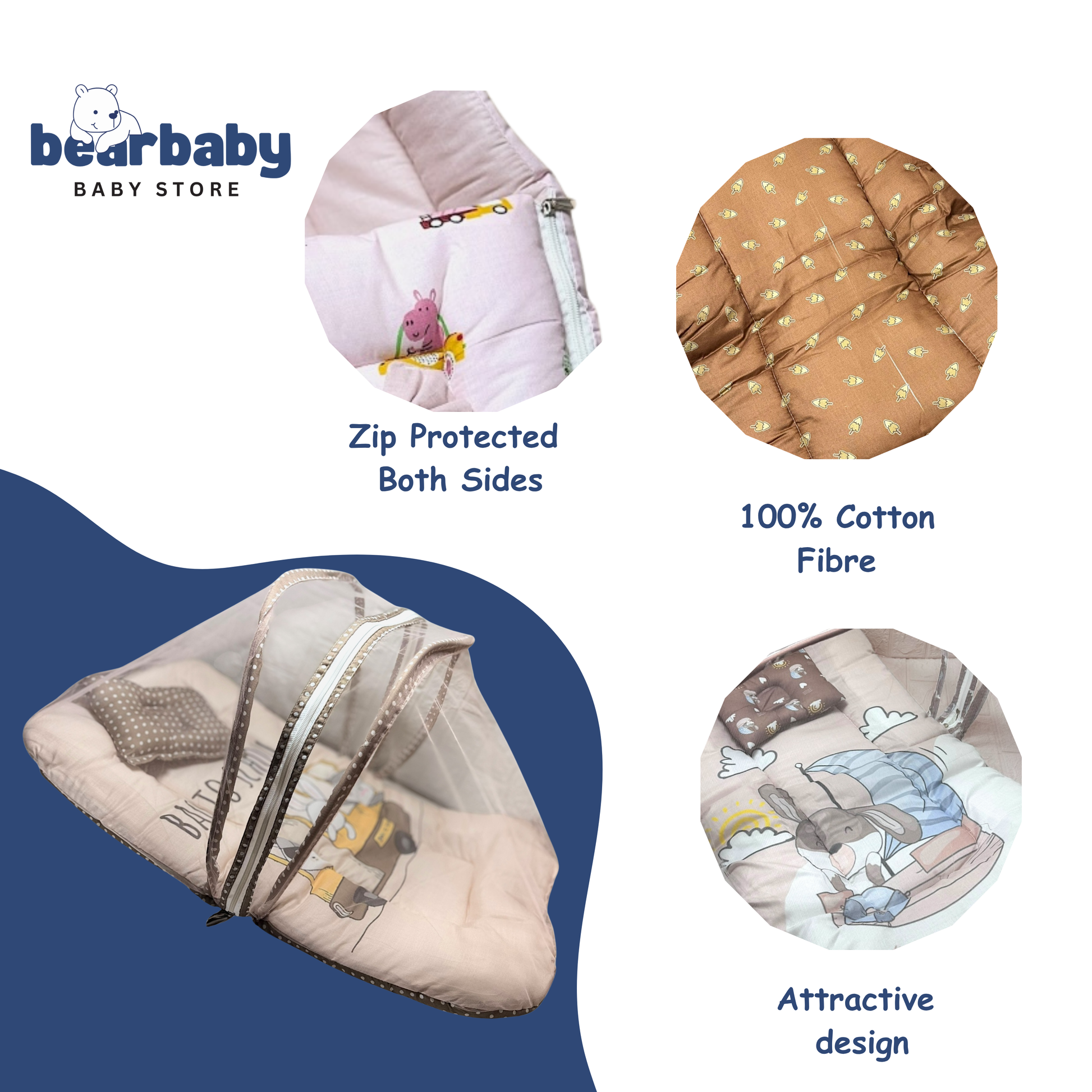 Baby Bed with Thick Mattress, Mosquito Net & Neck Pillow with Zip Closure