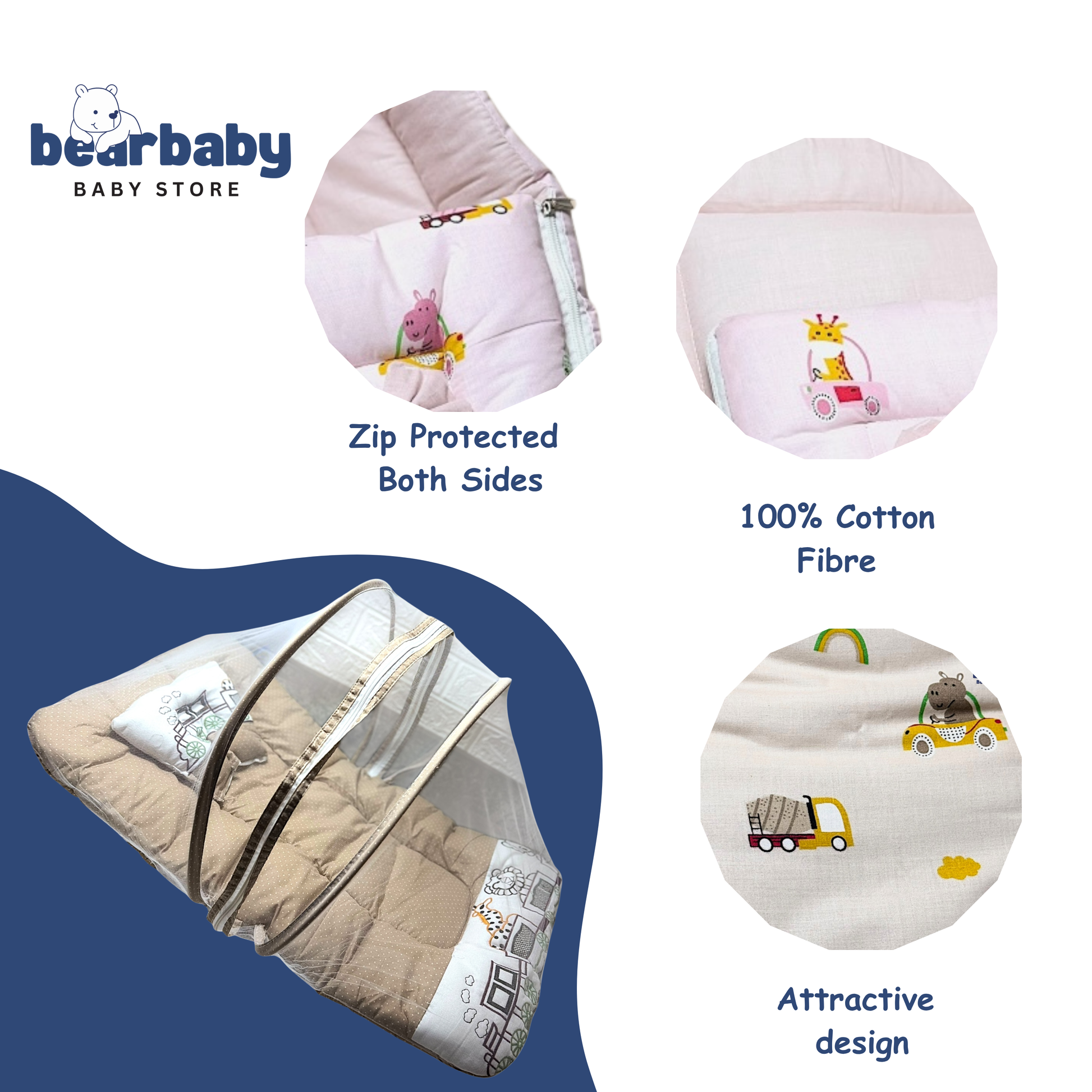 BearBaby Premium Baby Cotton Mattress Sleeping Bag with Net & Free Pillow