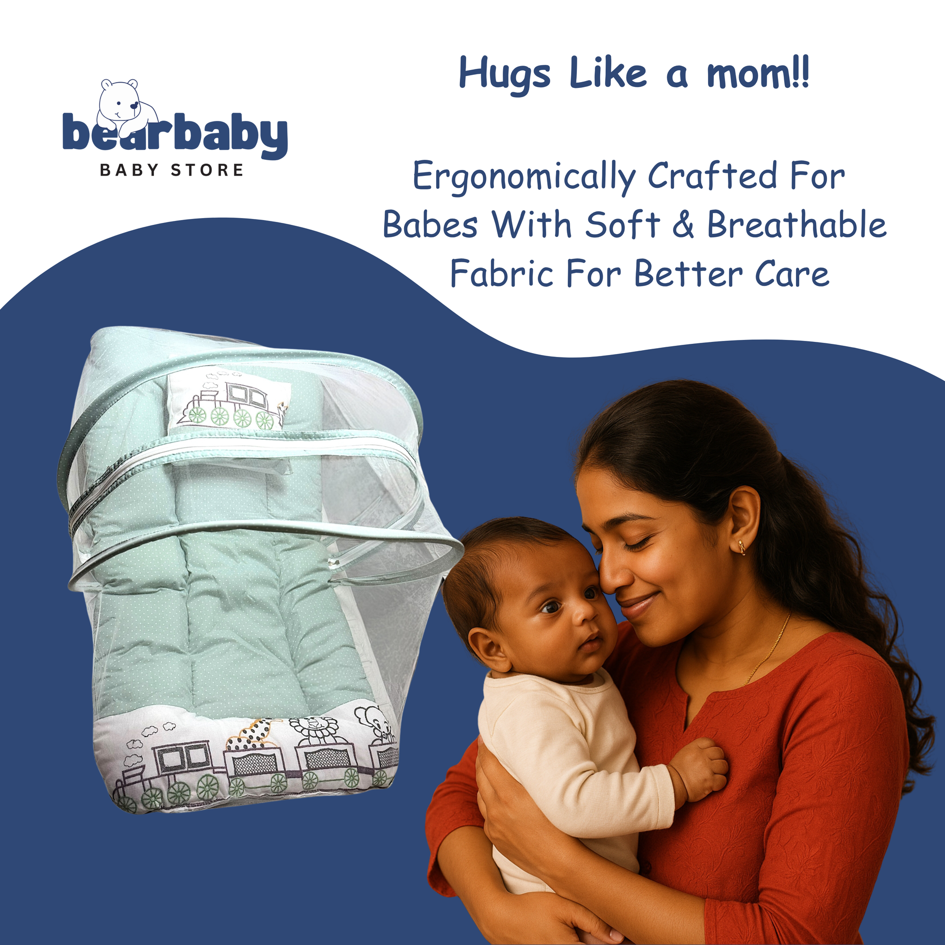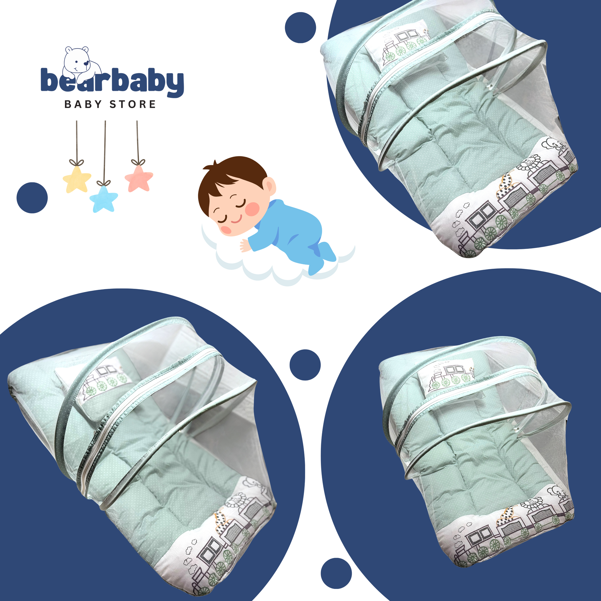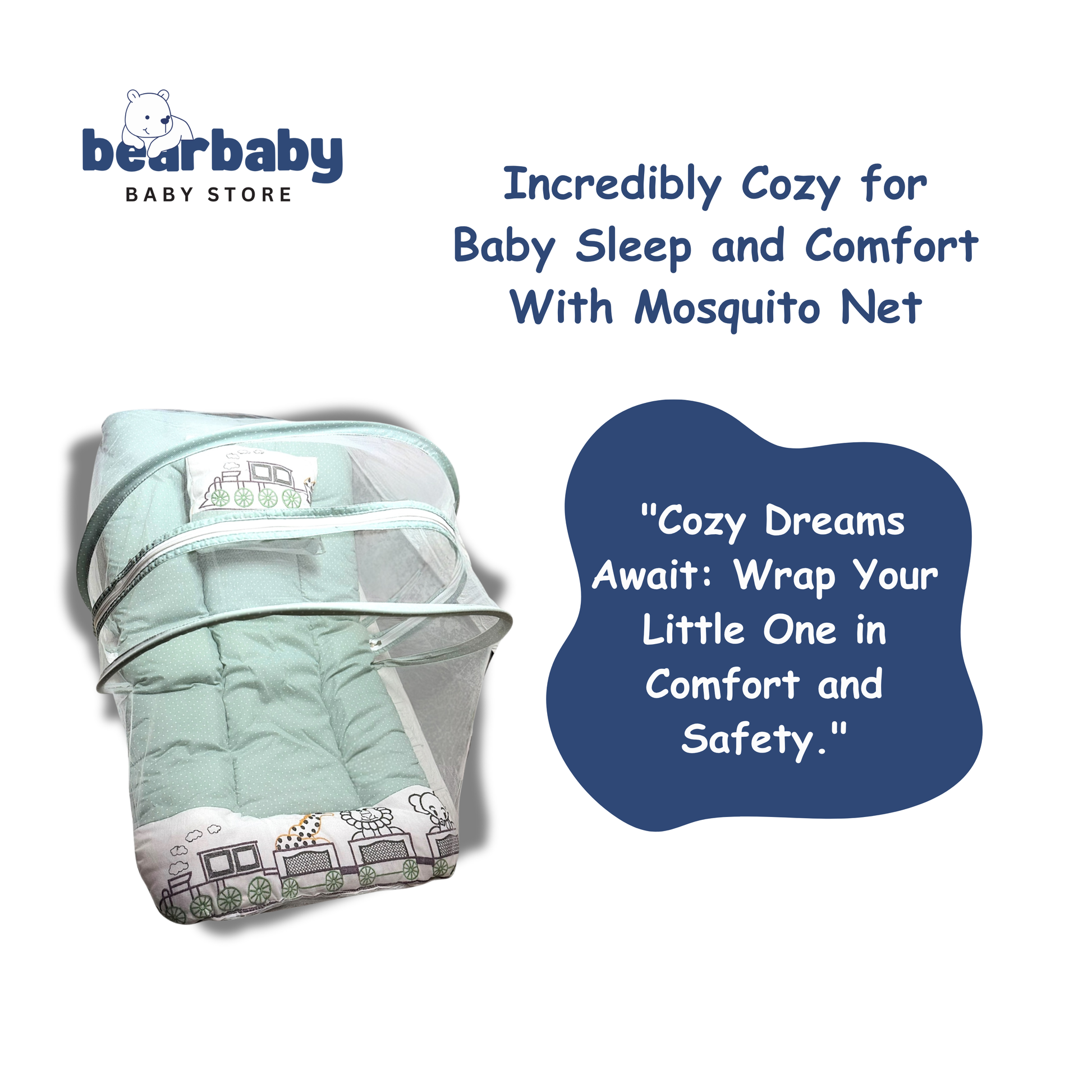 Made with 100% breathable cotton, this foldable baby mattress set comes with a mosquito net and a free soft pillow, making it the perfect choice for newborns and infants. Whether at home or while traveling, BearBaby ensures your little one sleeps soundly and stays protected from mosquitoes and dust.