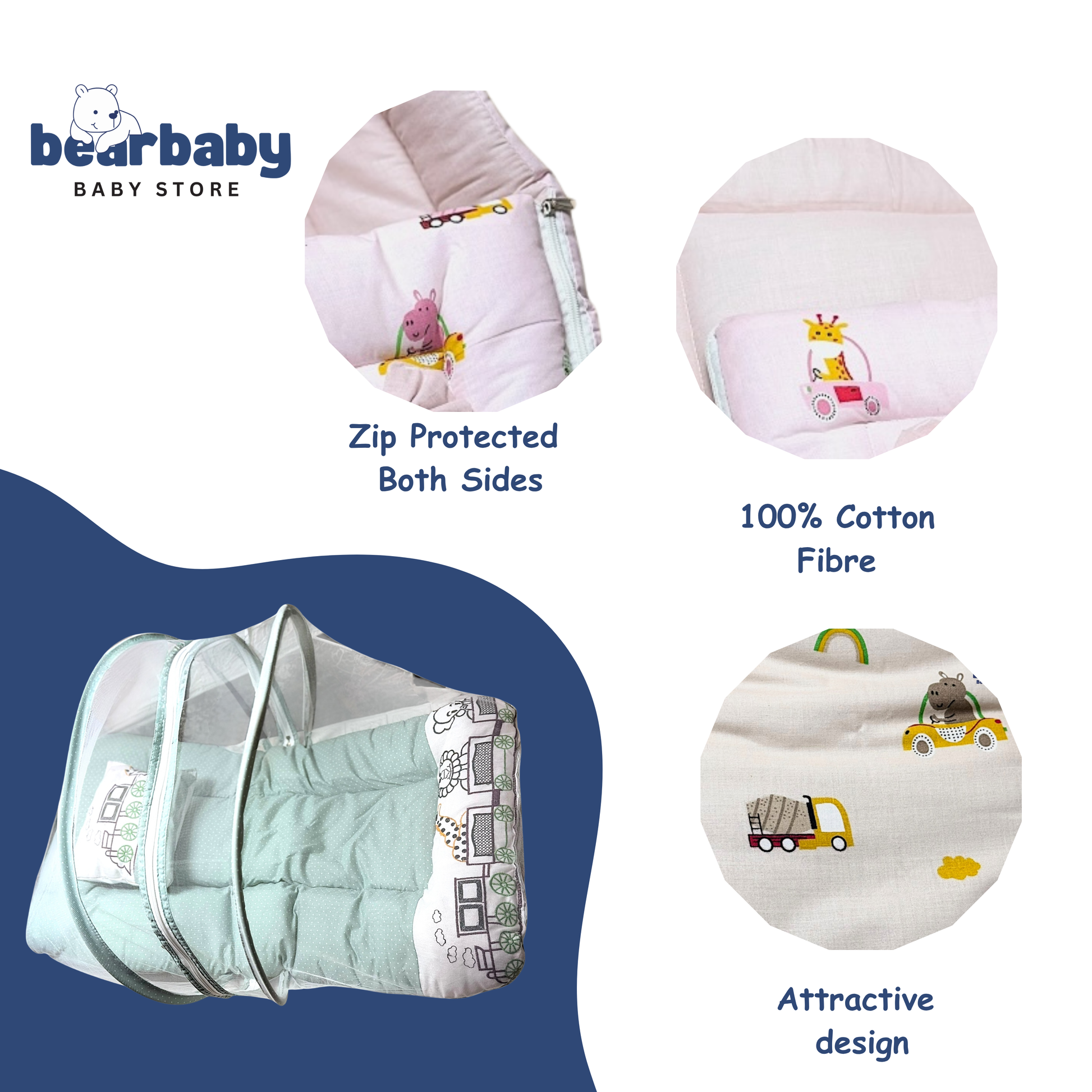 BearBaby Premium Baby Cotton Mattress Sleeping Bag with Net & Free Pillow