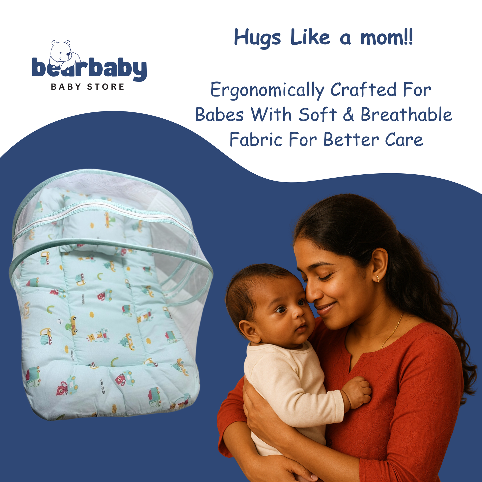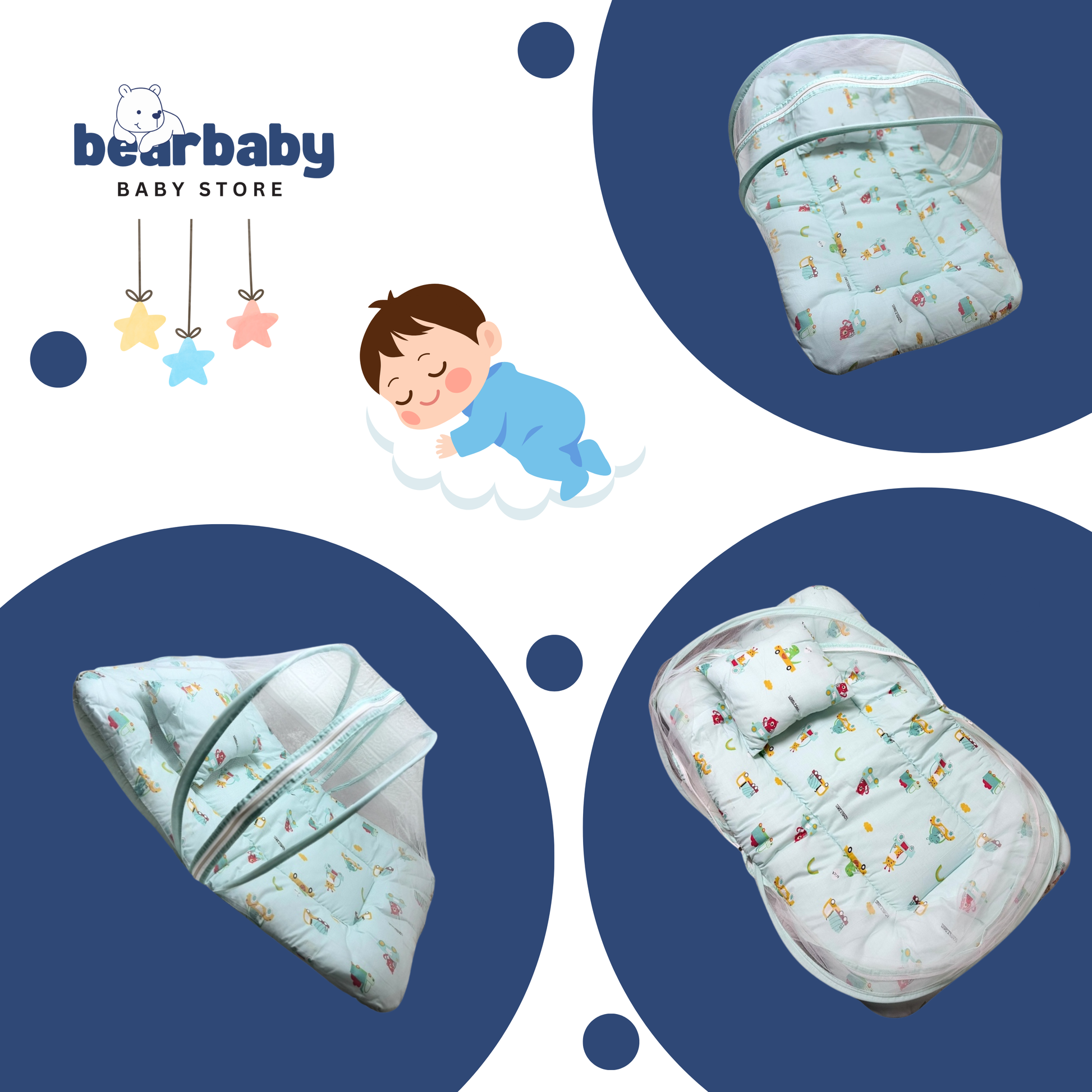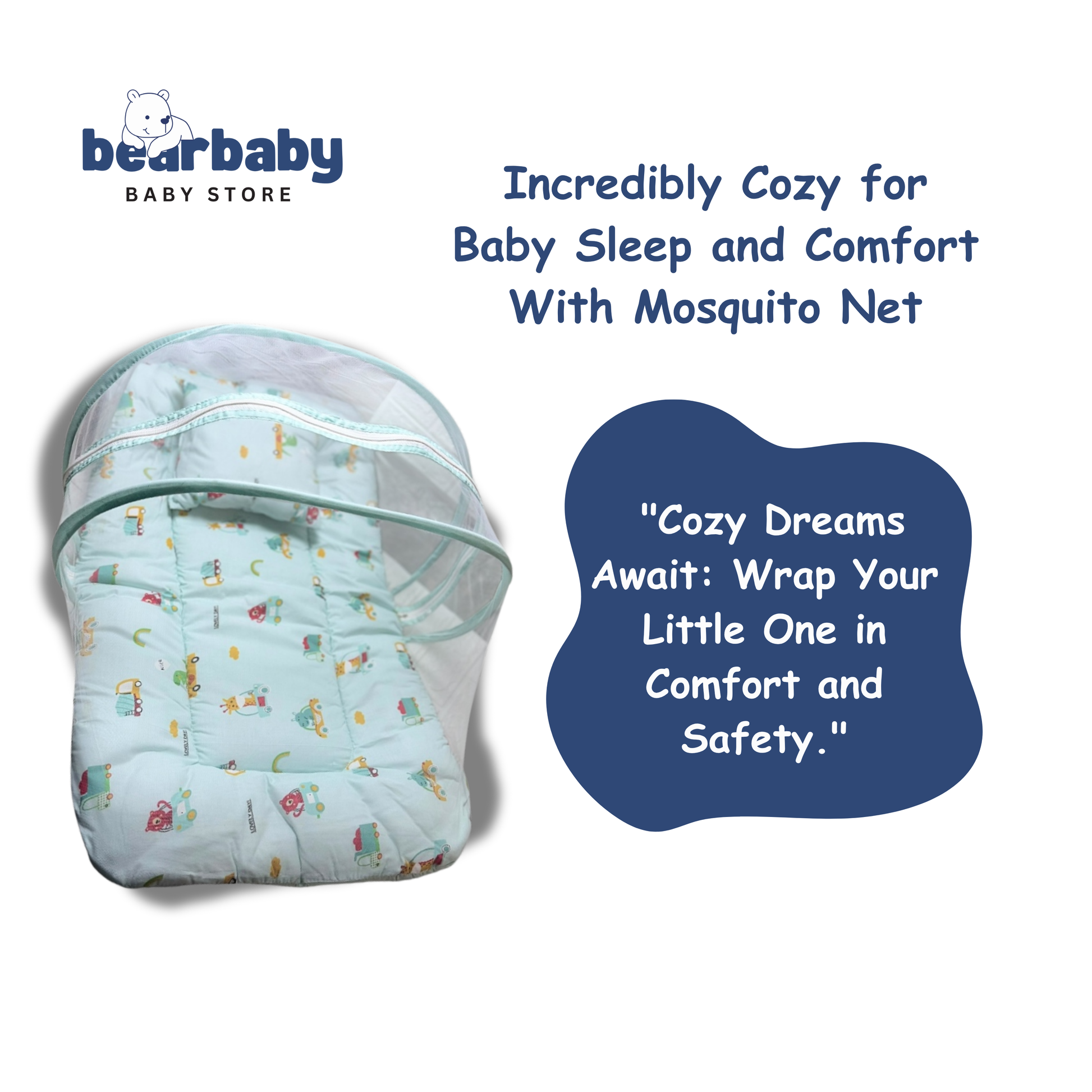Made with 100% breathable cotton, this foldable baby mattress set comes with a mosquito net and a free soft pillow, making it the perfect choice for newborns and infants. Whether at home or while traveling, BearBaby ensures your little one sleeps soundly and stays protected from mosquitoes and dust.