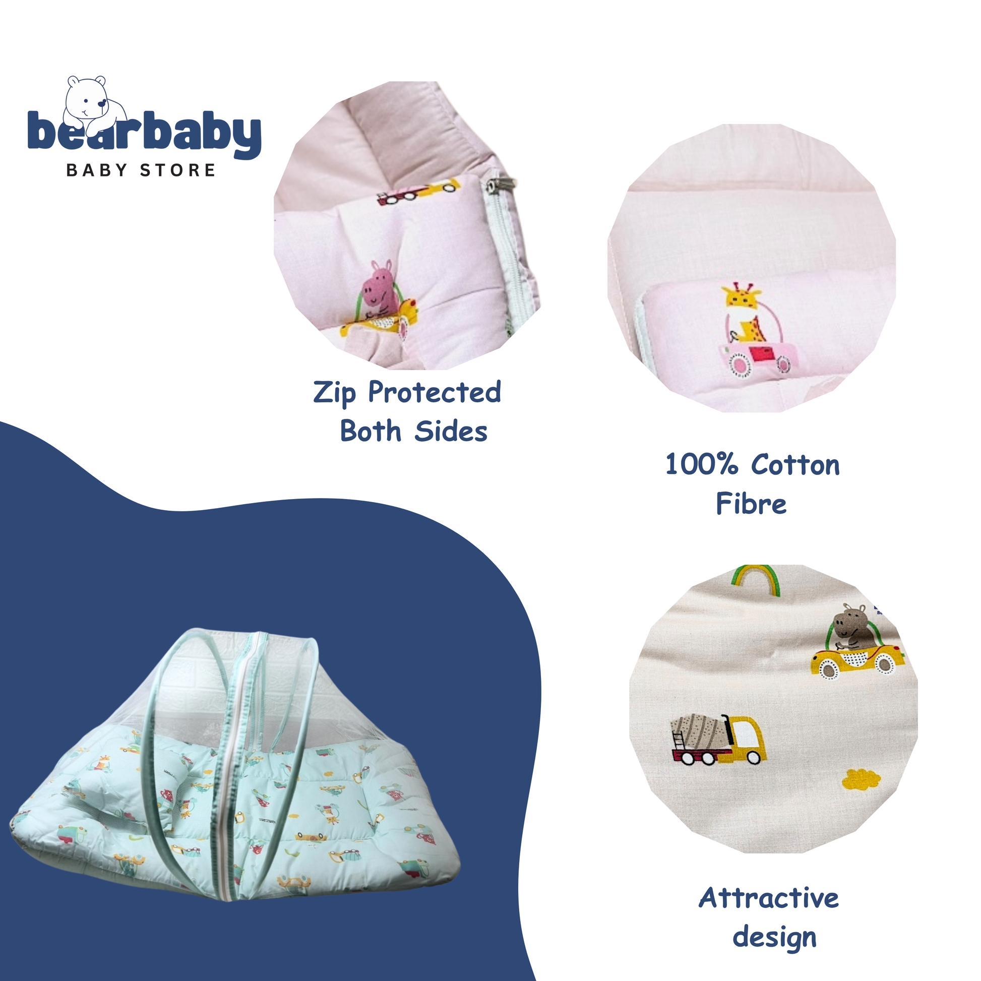 BearBaby Premium Baby Cotton Mattress Sleeping Bag with Net & Free Pillow