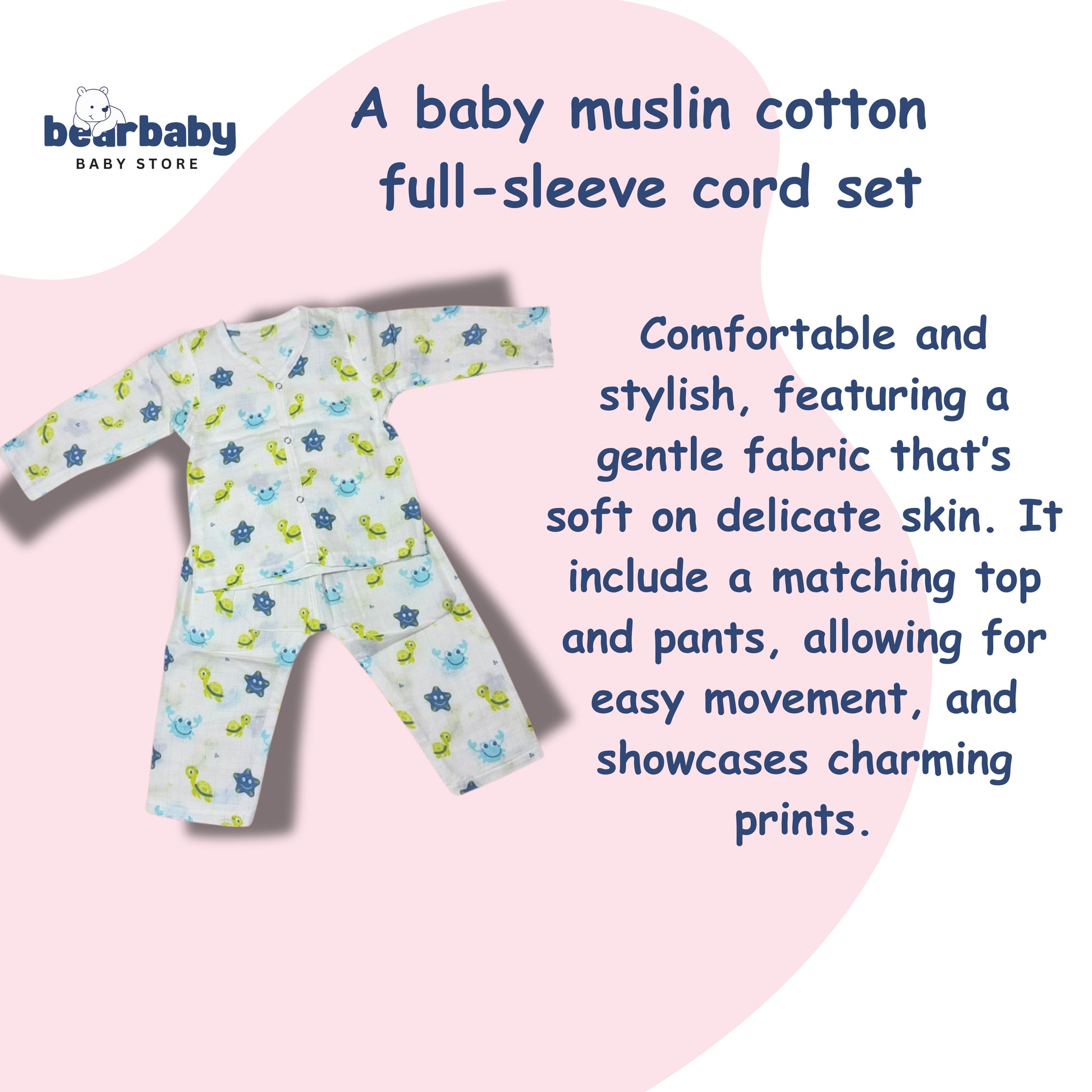 Keep your little one warm, comfortable, and stylish with our Baby Muslin Full Sleeve Jhabla and Pajama Cordset, designed for 0–1-year babies. Crafted from 100% soft, breathable muslin fabric, this lightweight yet cozy set is perfect for sensitive skin. The full-sleeve jhabla paired with matching pajama bottoms ensures your baby stays snug during cooler days or nights. Easy to wear, gentle on the skin, and machine washable – the ideal combination of comfort, warmth, and convenience.