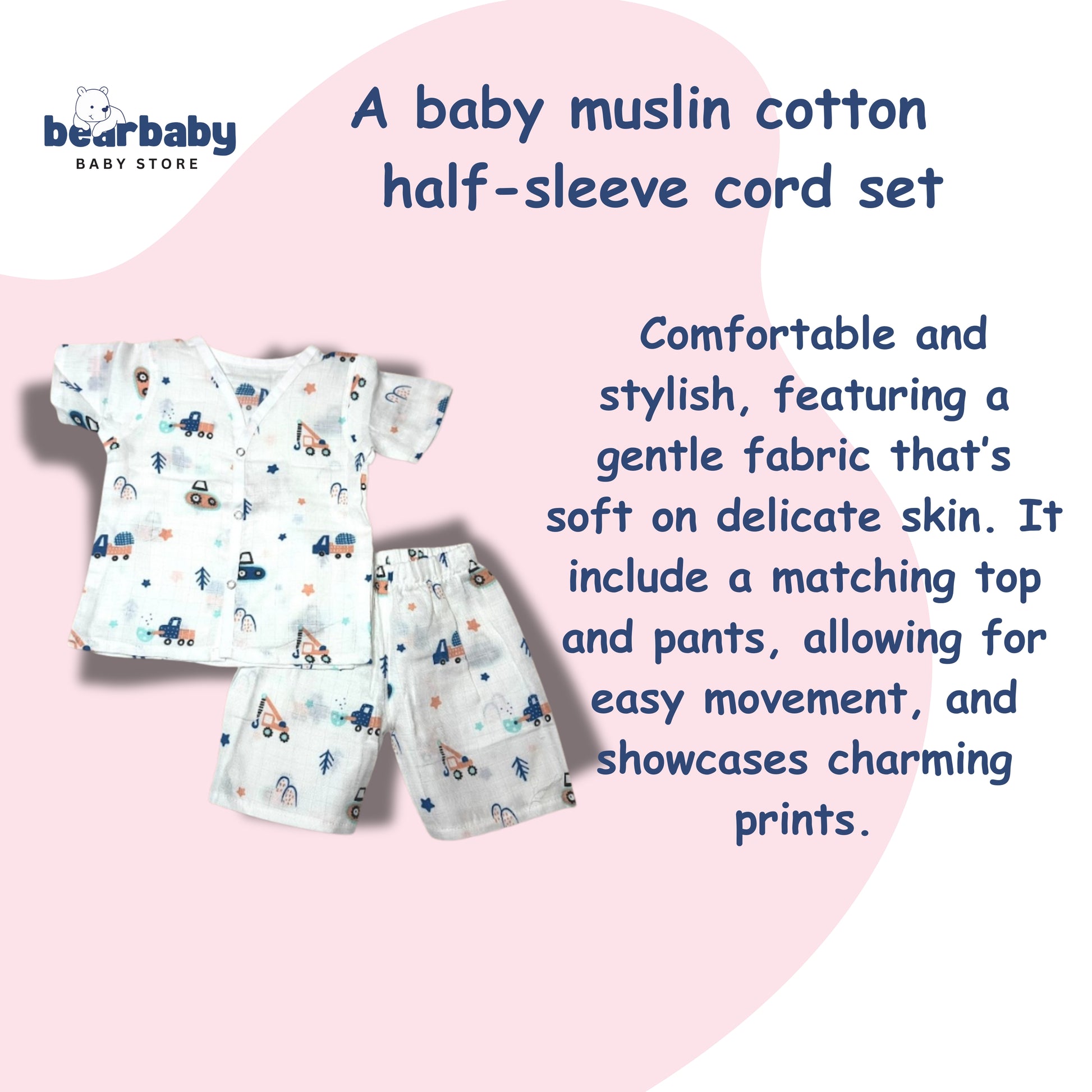 Keep your little one comfortable and stylish with our Baby Muslin Half Sleeve Jhabla and Pajama Cordset, specially designed for 0–1-year babies. Made from 100% soft, breathable muslin fabric, this lightweight set is gentle on sensitive skin. The half-sleeve jhabla paired with matching pajama bottoms ensures your baby stays cool and comfortable, perfect for warmer days or indoor wear. Easy to wear, gentle on skin, and machine washable – the ideal combination of comfort, style, and convenience.