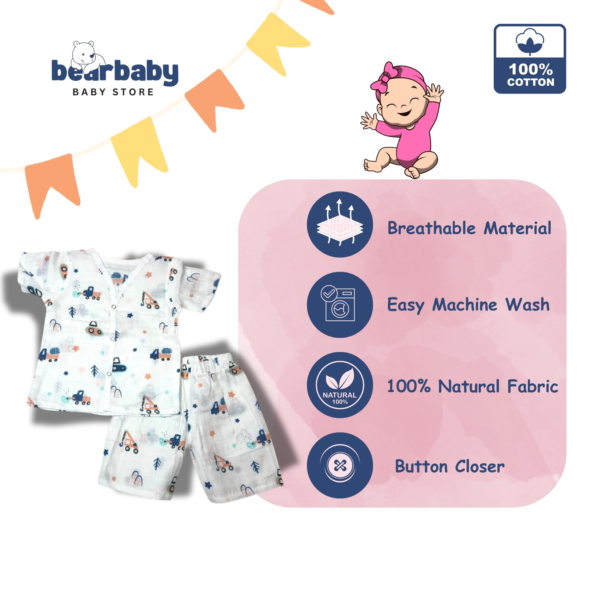 Baby Unisex Organic Cotton Muslin Half Sleeves Jhabla & Payjama Set - Size 6m-9m-Truck Print