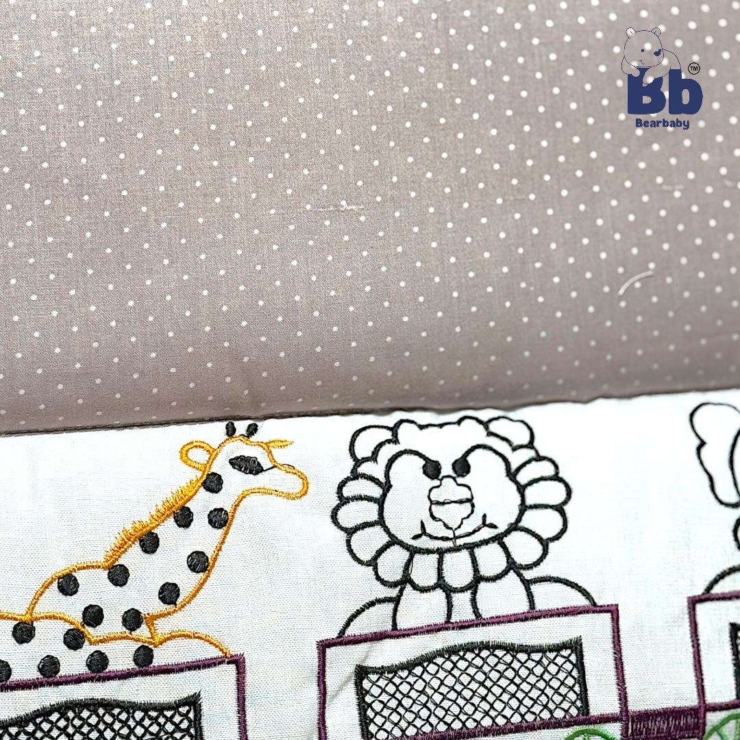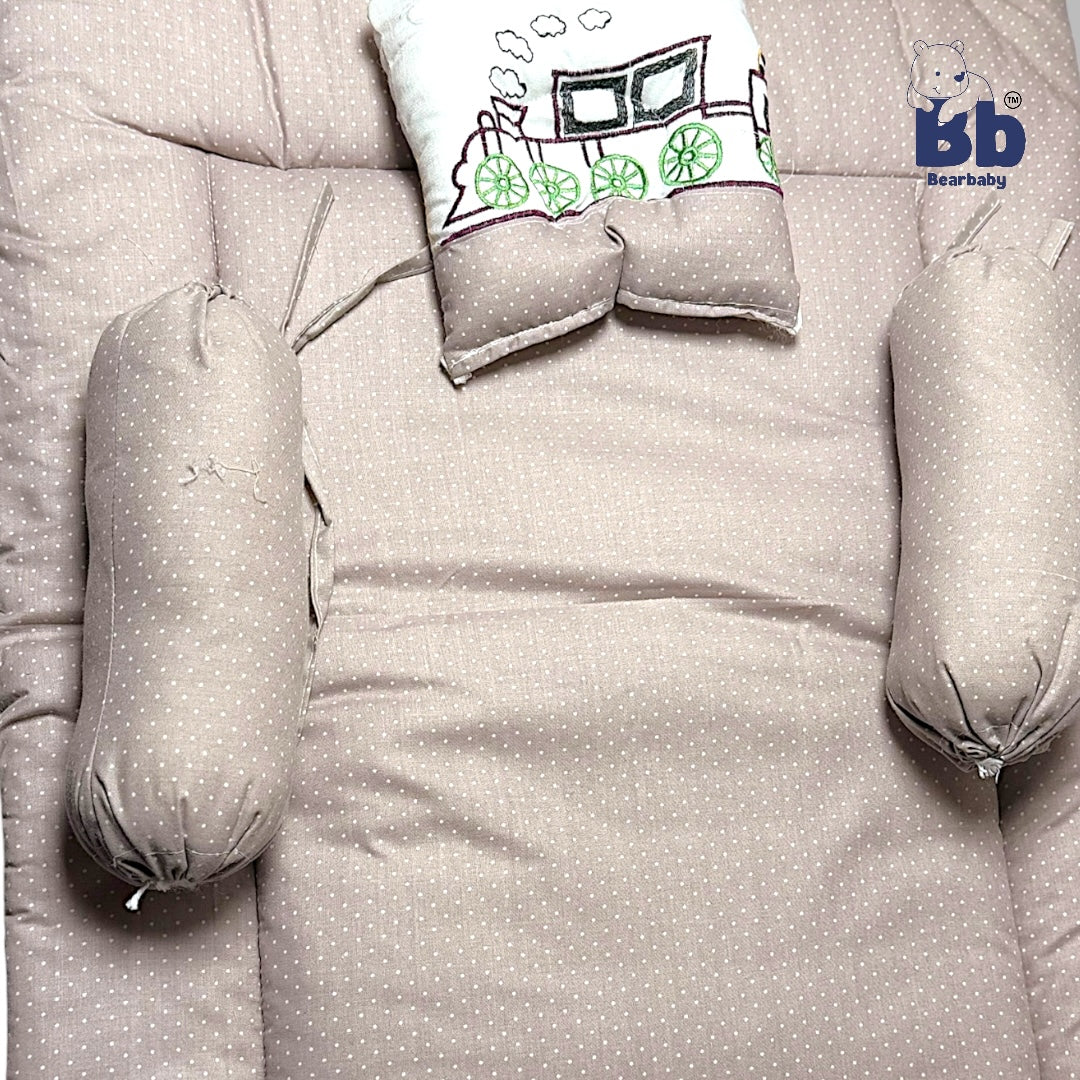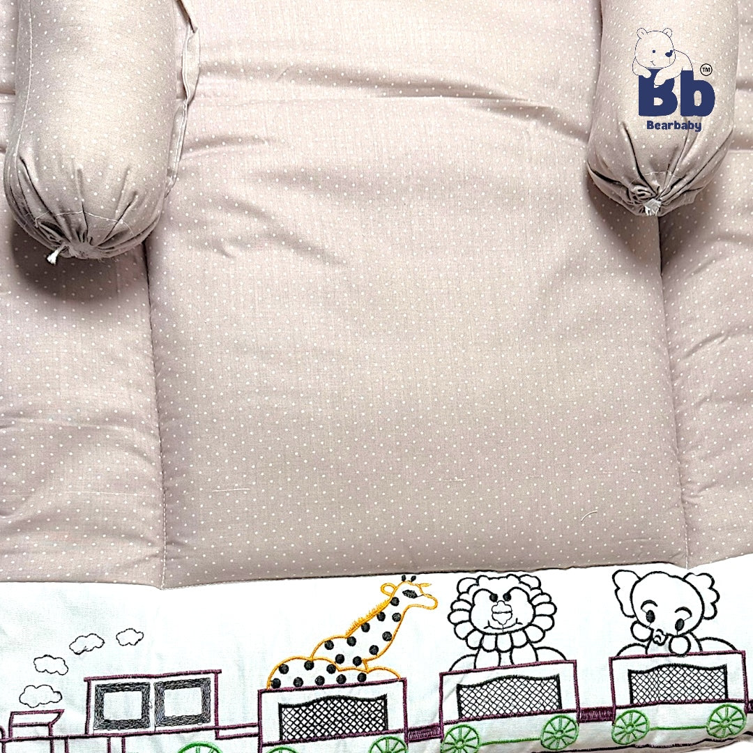 BearBaby Premium Embroidery Cotton Bedding Set | Baby Mattress with Bolster Set & Free Pillow | Soft & Washable Newborn Bedding (0–12 Months) BEIGE