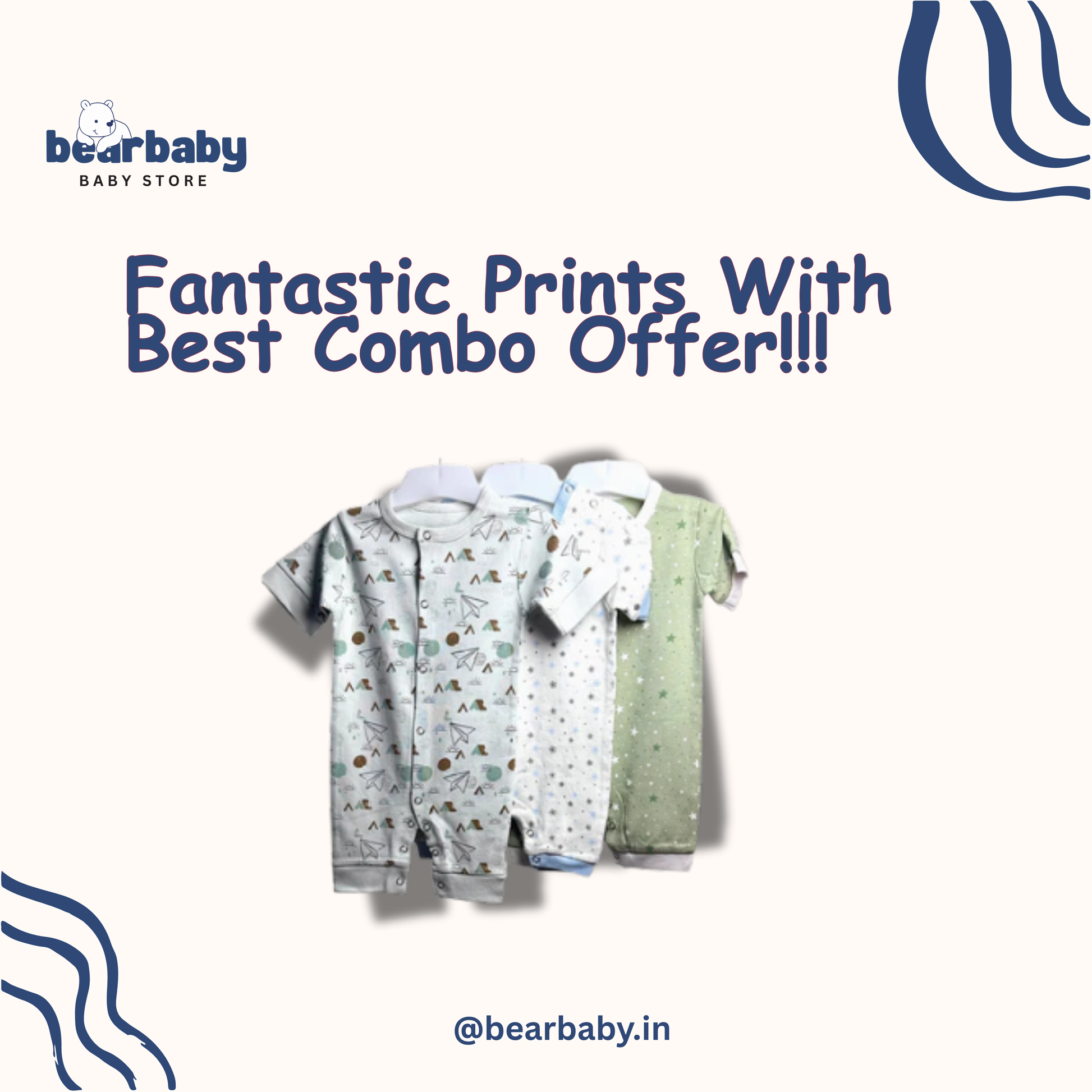Baby Cotton Jumpsuit-UniSex 9m-12m-Combo Pack of 3-Assorted Prints 8