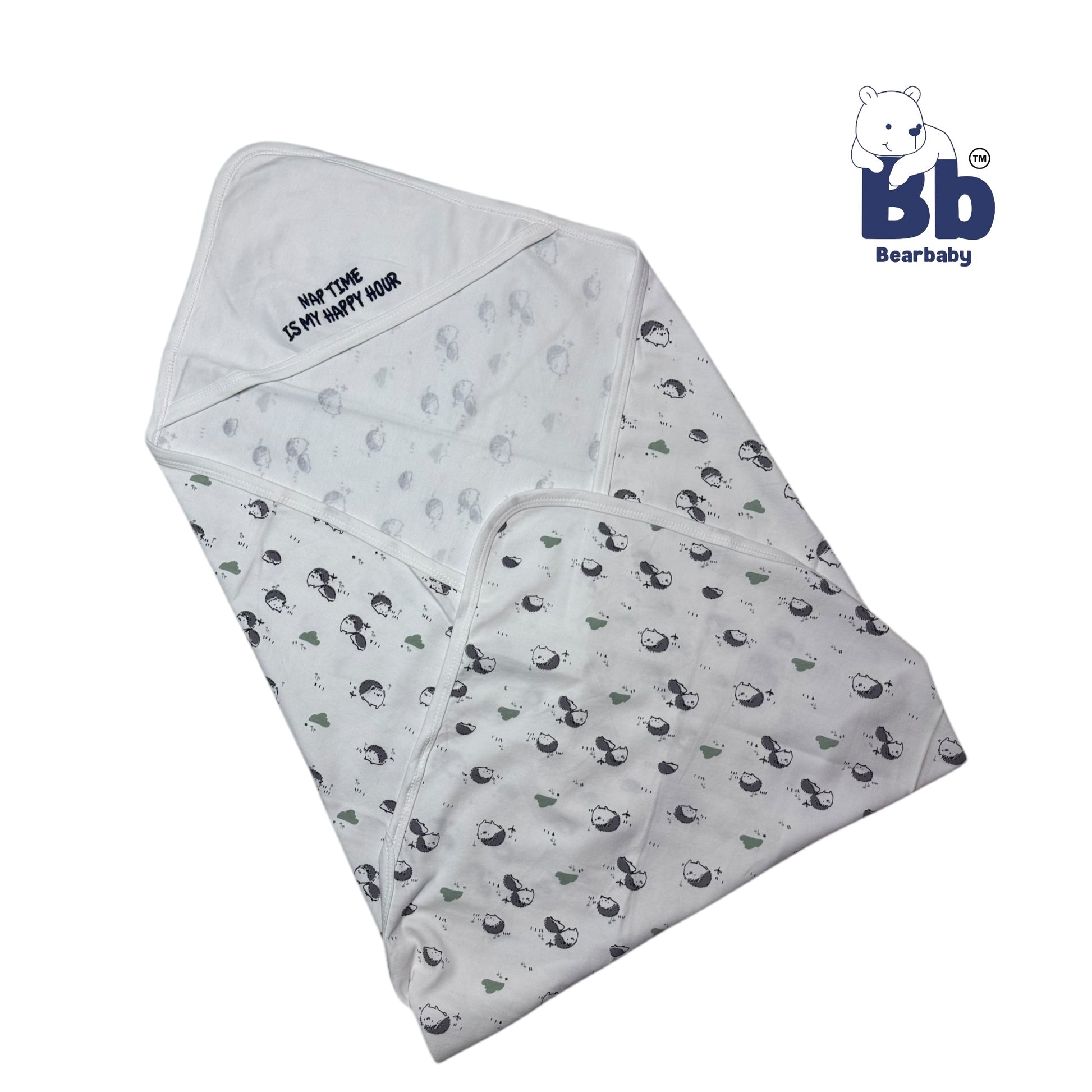 Keep your little one cozy and adorable with this Cotton Knit Hooded Wrapper! Made with soft cotton knit material and featuring a playful "Nap Time" print, this hooded wrapper is perfect for nap time and beyond. With a generous size of 76 x 76 cm, it's perfect for babies of any size.