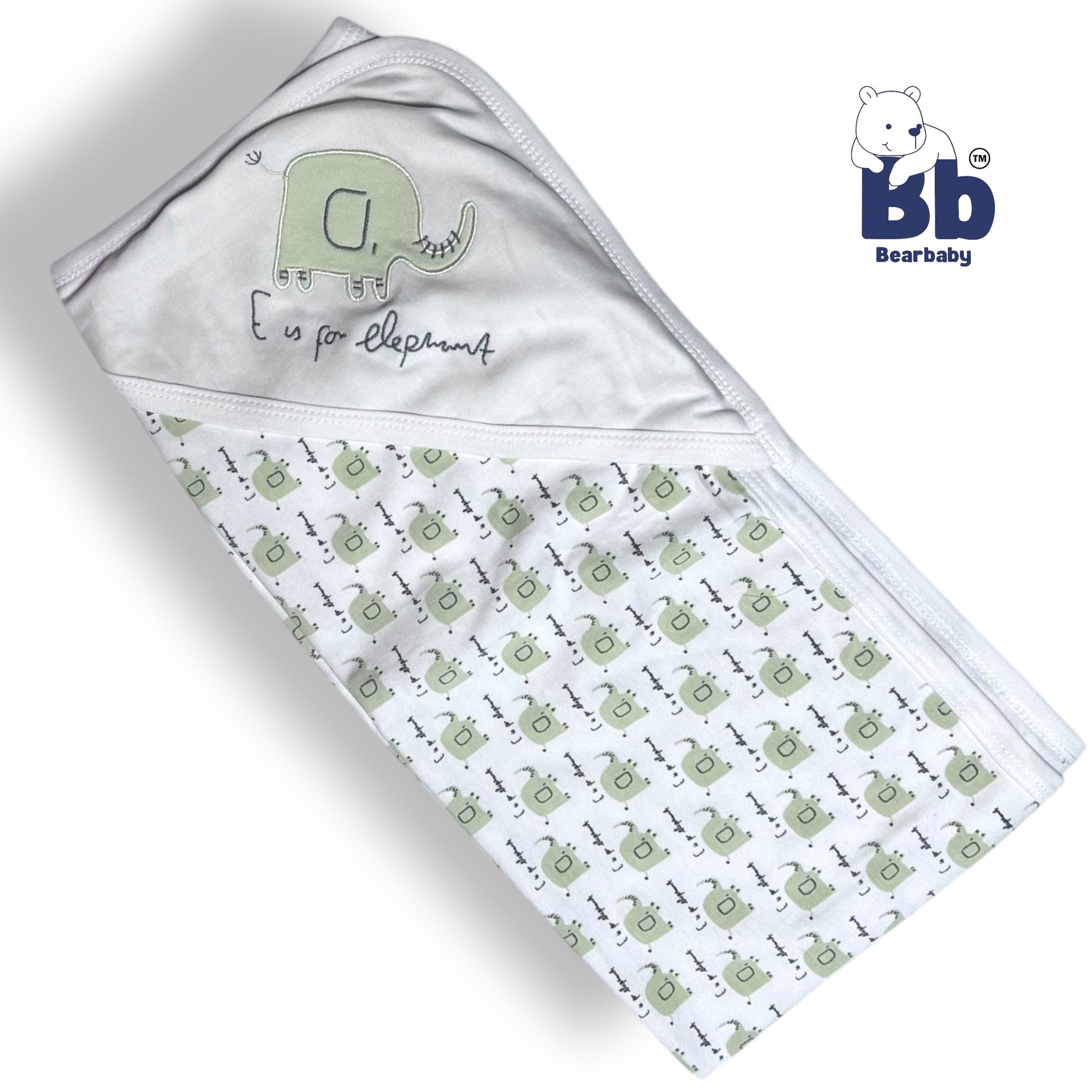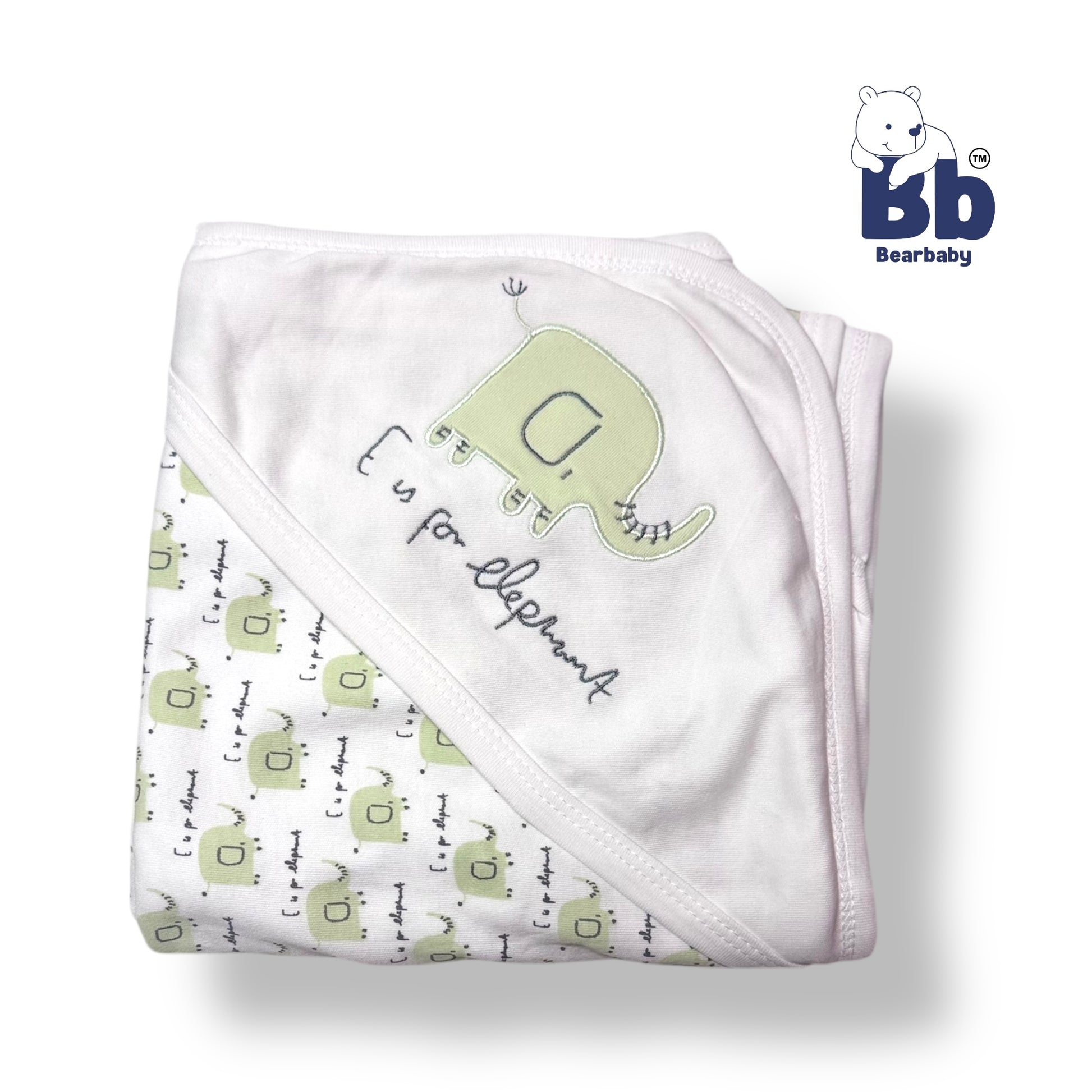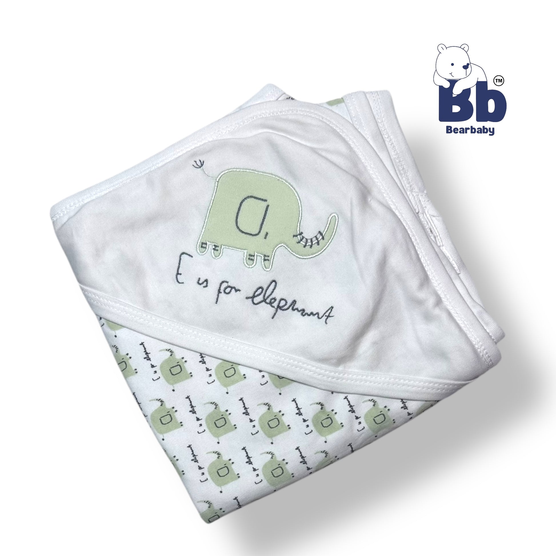 Wrap your little one in warmth and comfort with our Cotton Knit Hooded Wrapper. Made from soft cotton knit, this wrapper features a playful elephant print in green and a large size of 76 x 76 cm to easily swaddle your baby. Keep your baby cozy and cute with our Hooded Wrapper!