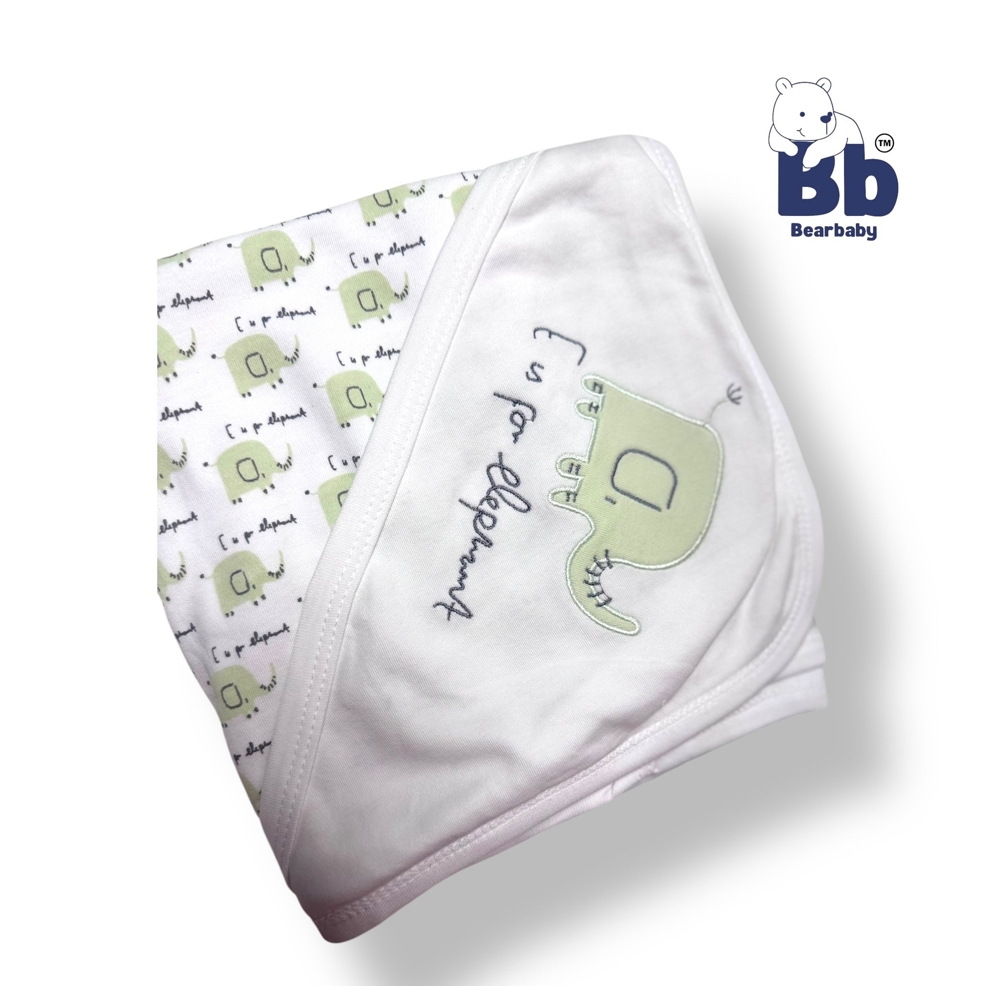 Cotton Knit Hooded Wrapper Size L 76 x B 76 cm - Elephant Print Green