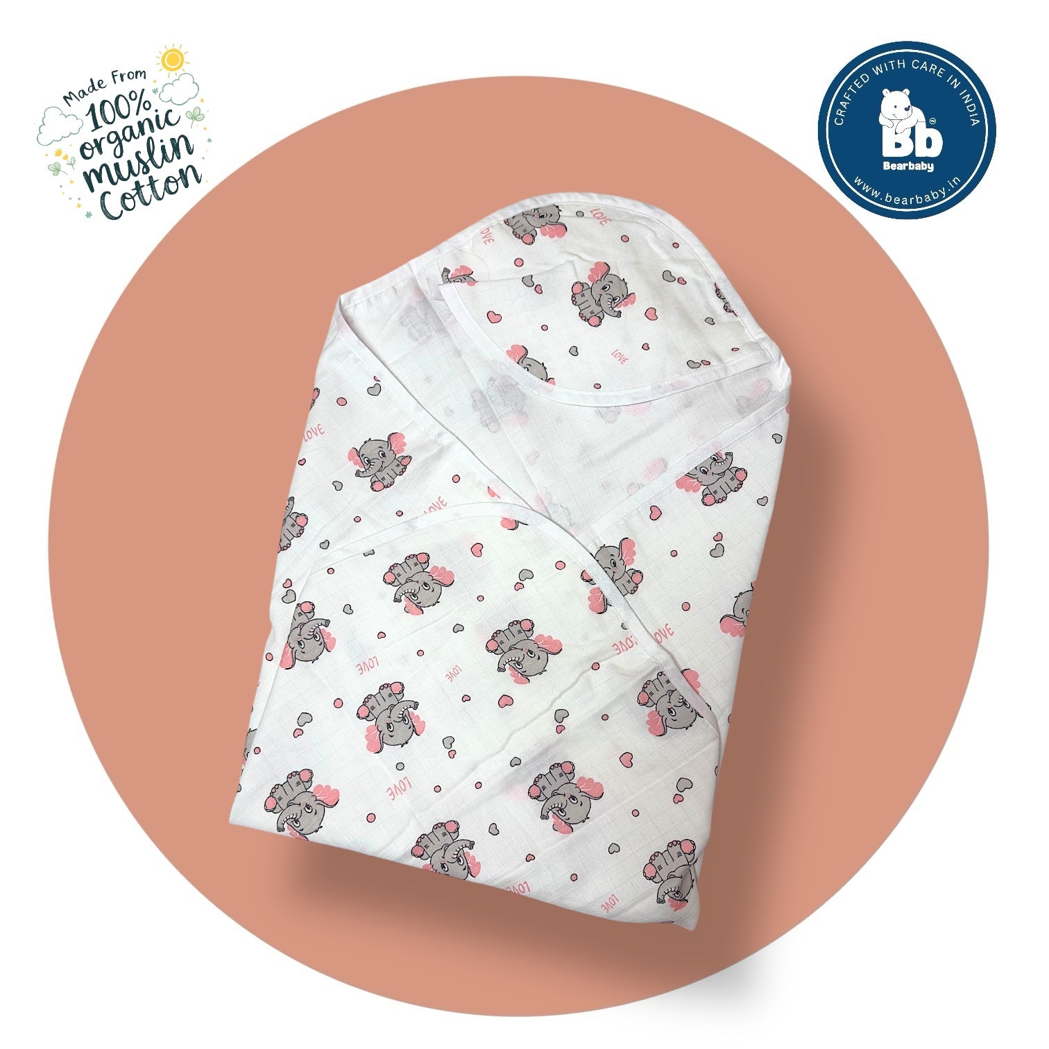 Muslin Hooded Towel for Newborn Baby-2Layer-Size 70cm*70cm-Baby Elephant Print