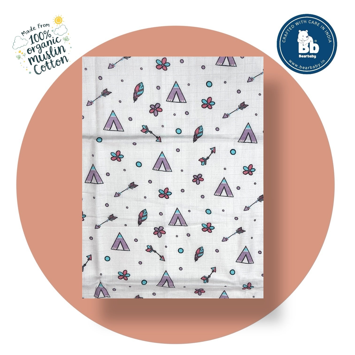 Muslin Hooded Towel for Newborn Baby-2Layer-Size 70cm*70cm-Flower Arrow Print