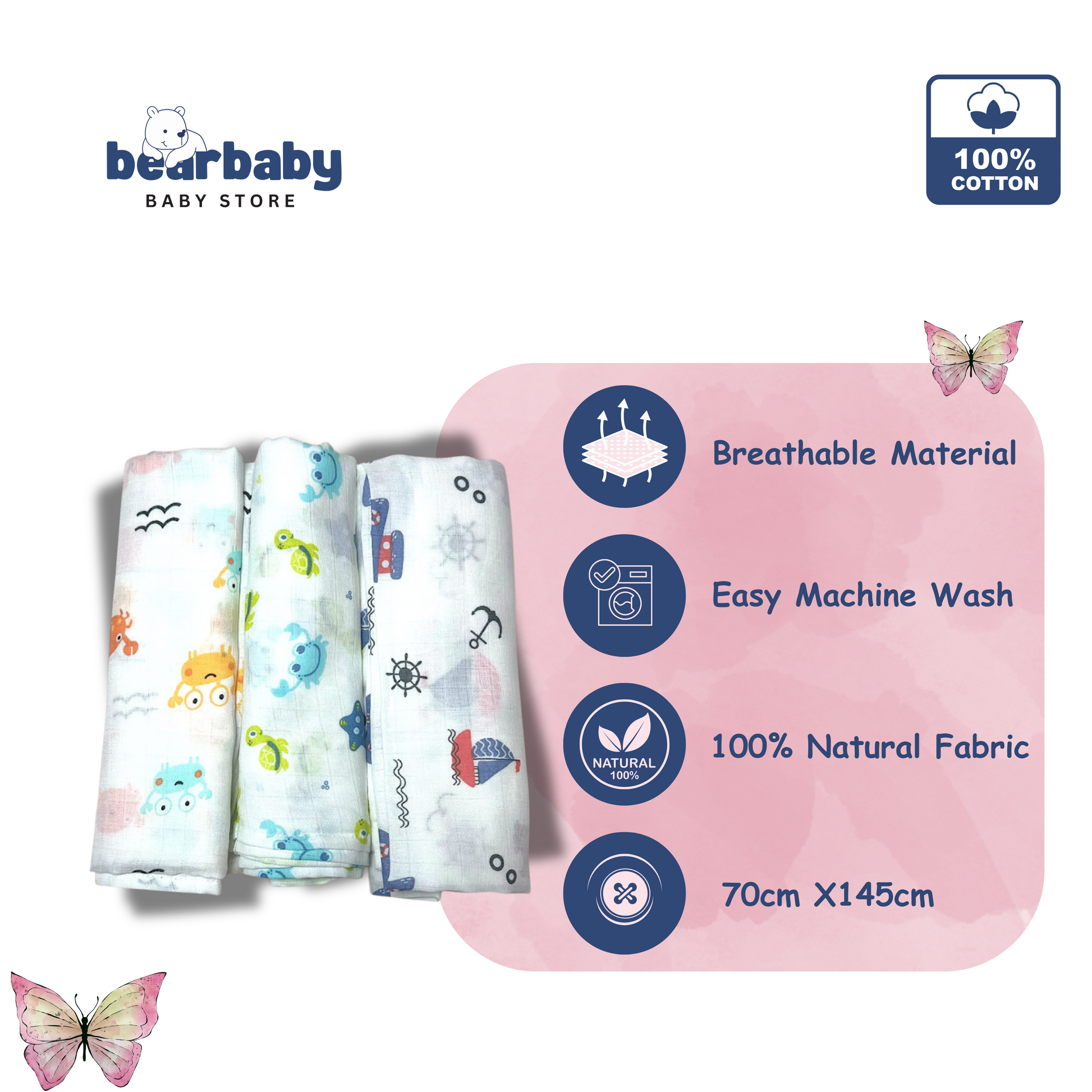 Wrap your baby in softness and comfort with this muslin cotton swaddle set, designed for newborns and infants. Featuring a lightweight, breathable fabric, these swaddles ensure gentle warmth while keeping your baby cozy and secure.