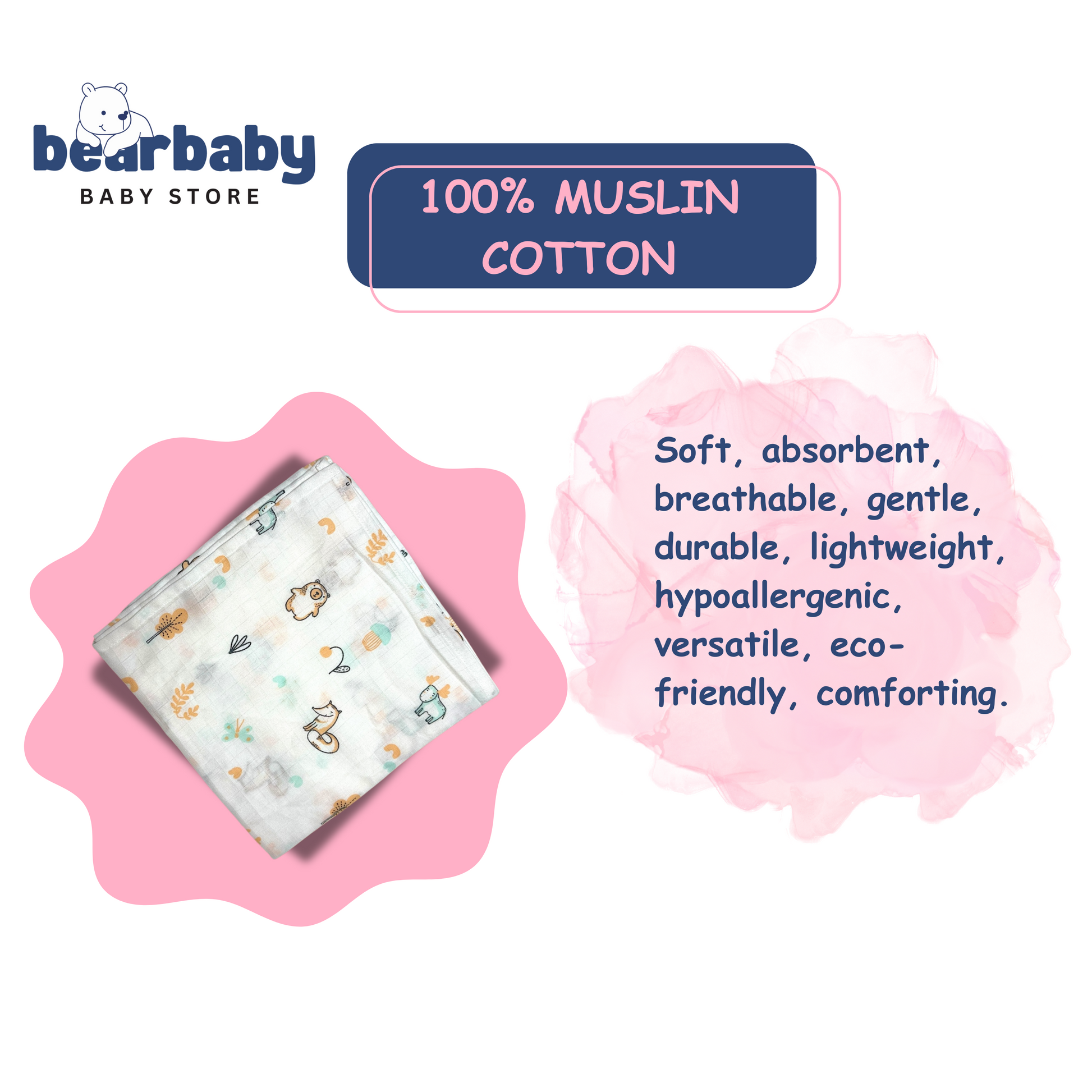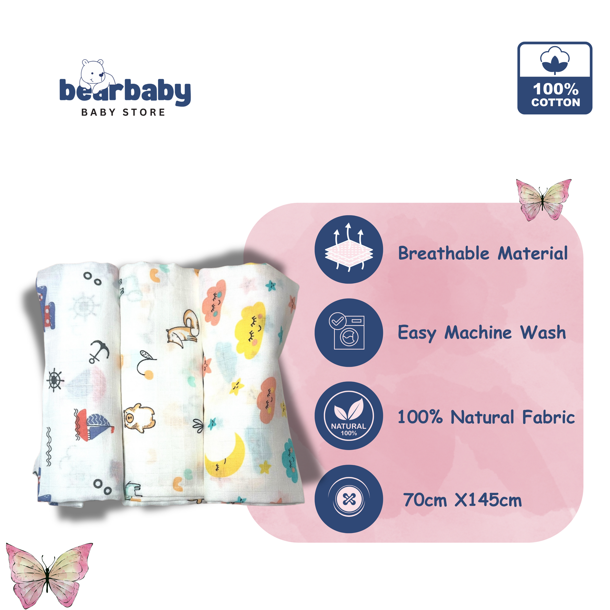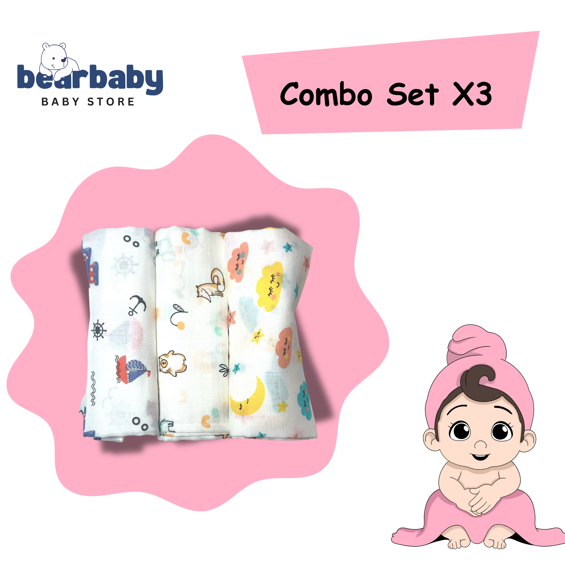 Wrap your baby in softness and comfort with this muslin cotton swaddle set, designed for newborns and infants. Featuring a lightweight, breathable fabric, these swaddles ensure gentle warmth while keeping your baby cozy and secure.