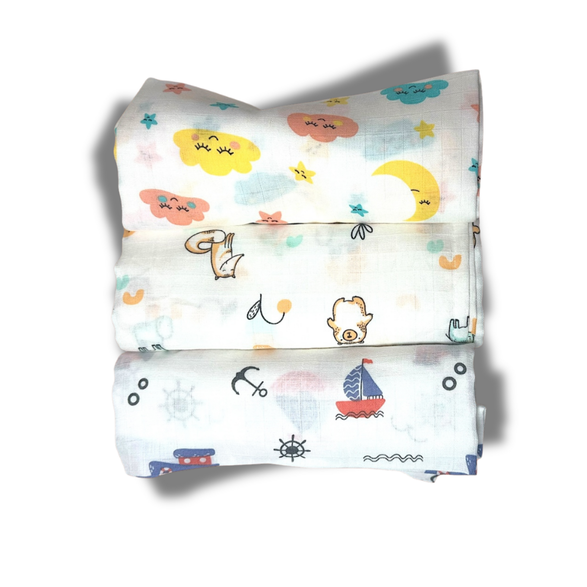 Muslin Soft Cotton Swaddle/Baby Wrapper-Size 100cm*100cm-Combo Pack of 3-Assorted Prints3