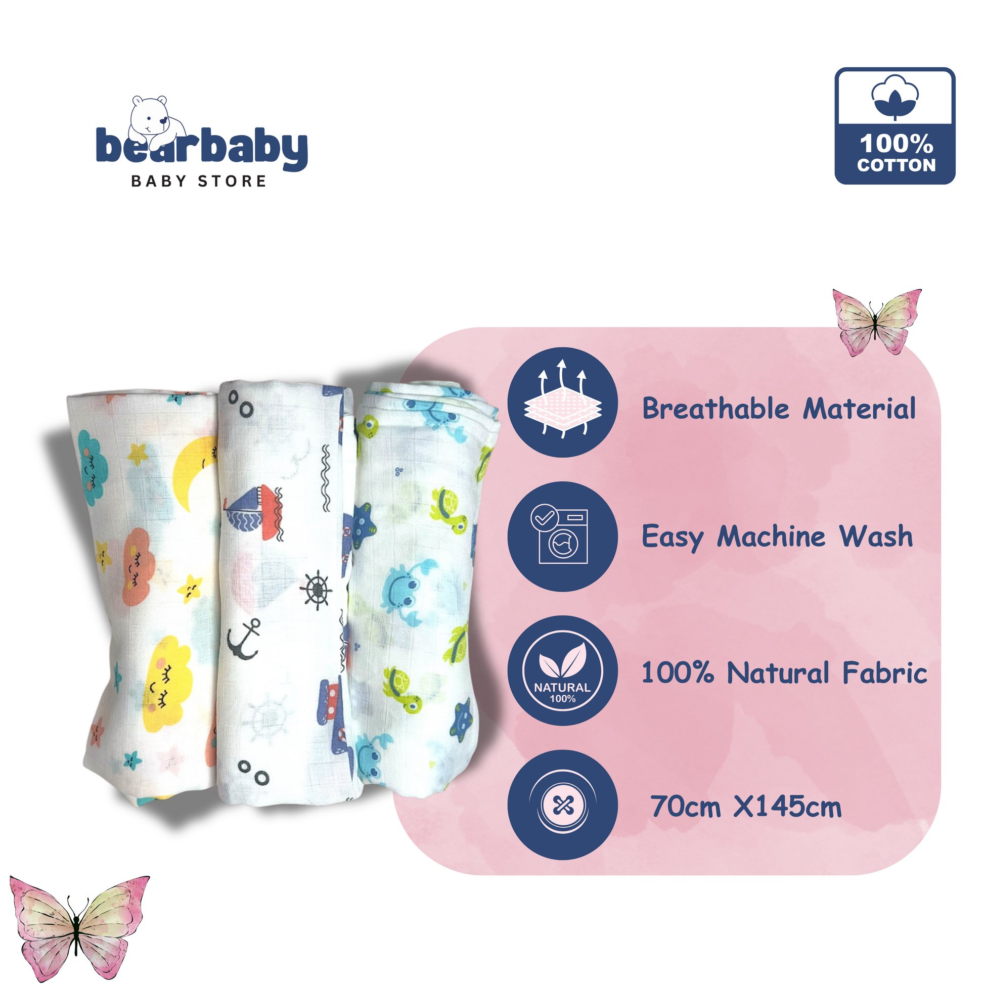 Wrap your baby in softness and comfort with this muslin cotton swaddle set, designed for newborns and infants. Featuring a lightweight, breathable fabric, these swaddles ensure gentle warmth while keeping your baby cozy and secure.