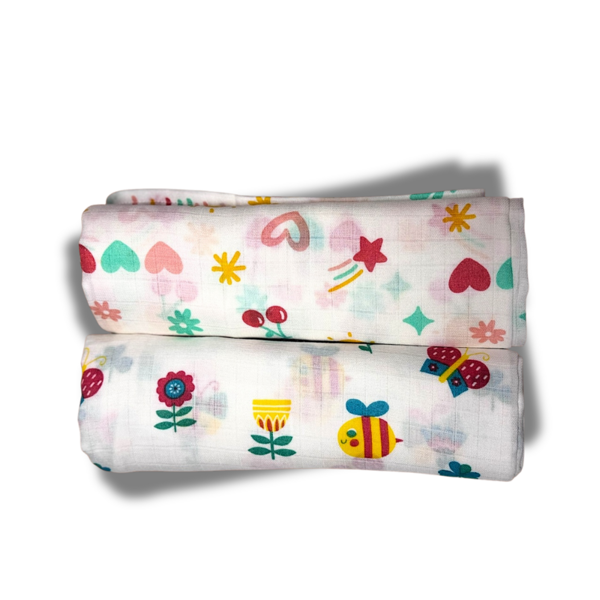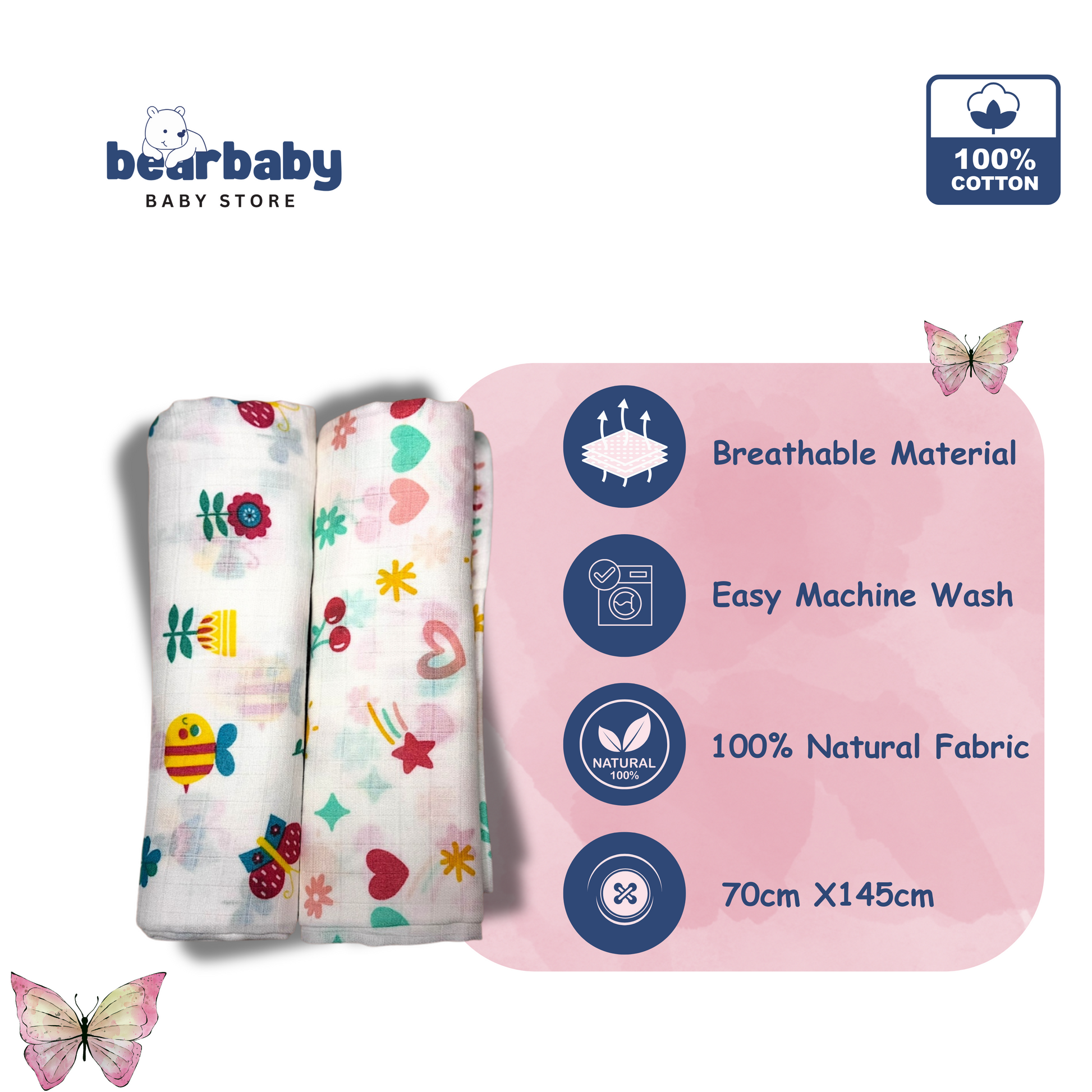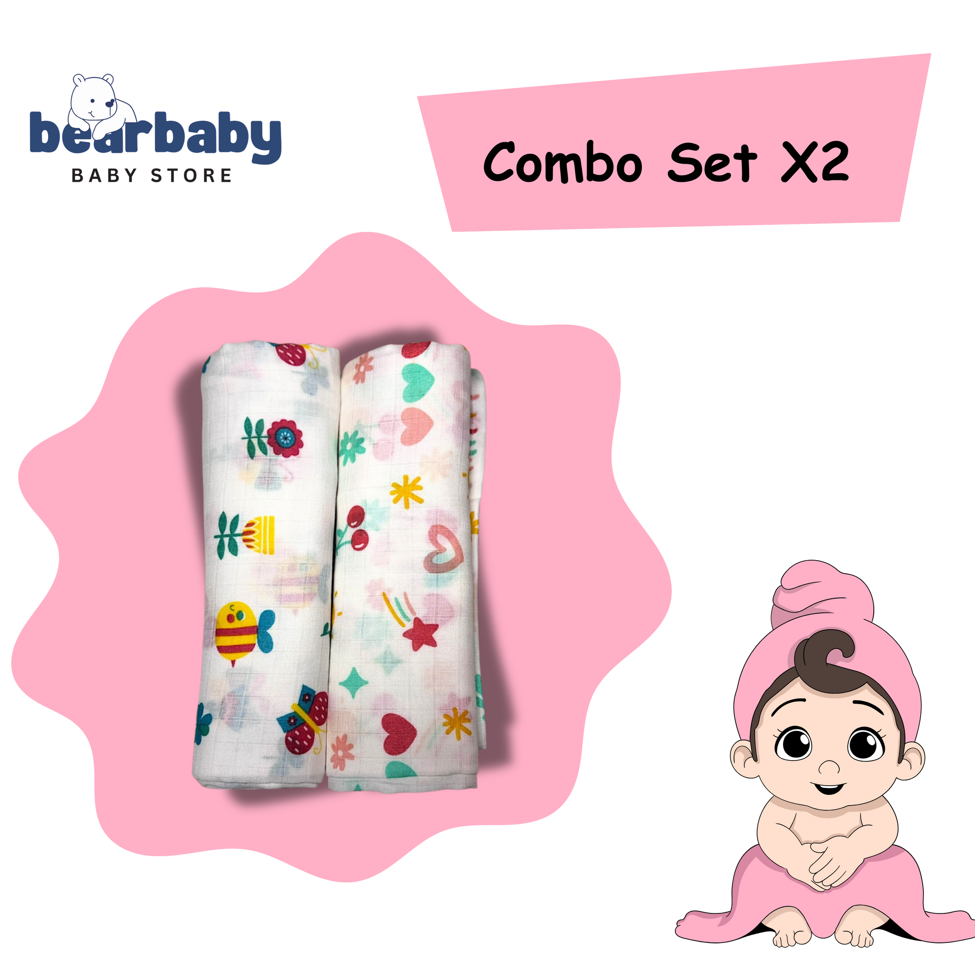 Muslin Towel for Newborn Baby - 1 Layer / Size 70cm x 145cm - Combo Pack of 2 - Assorted Prints