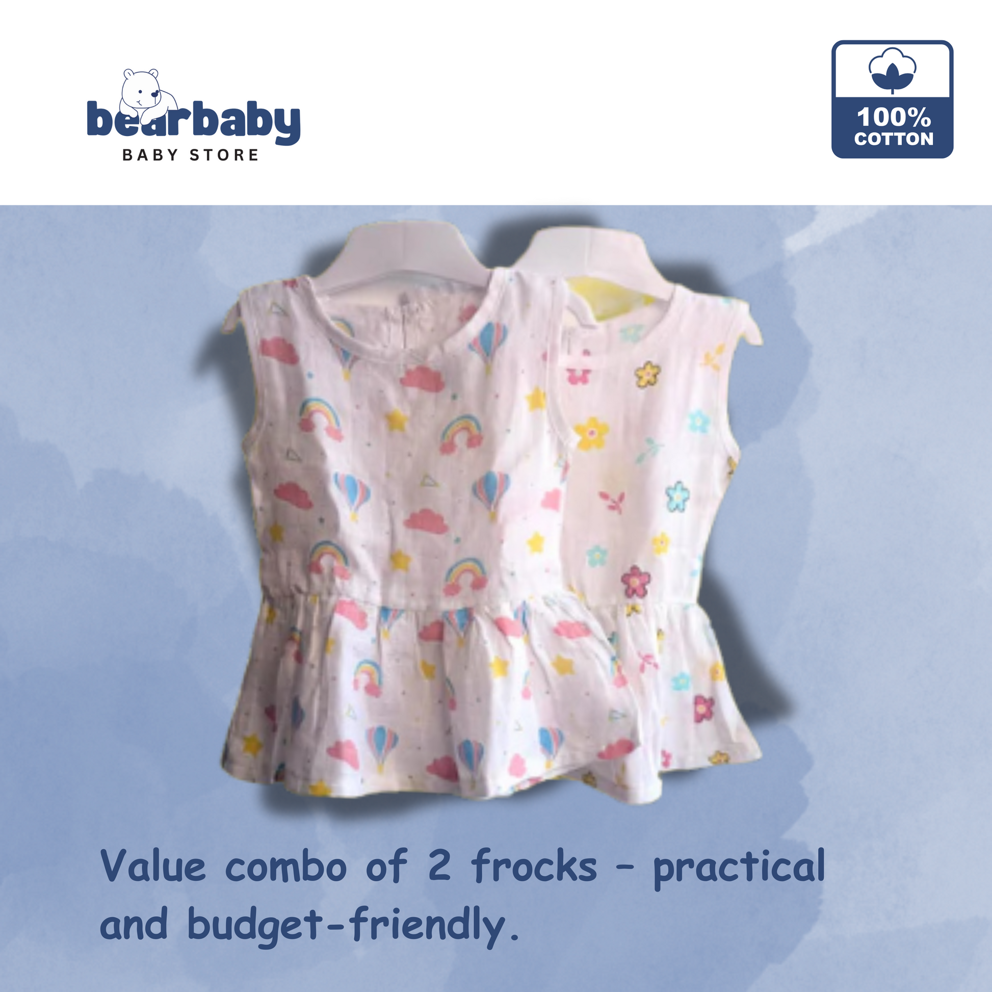 Baby Girl Organic Cotton Sleeveless Frock - Size 6M to 12M - Combo Pack of 2 - Assorted Prints