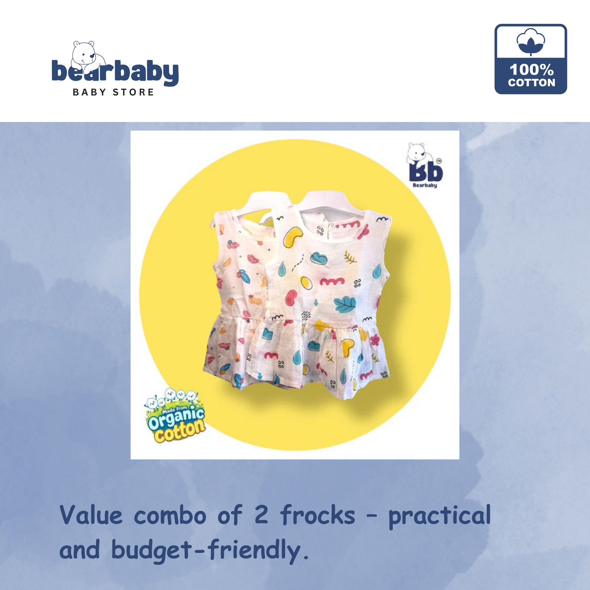 Baby Girl Organic Cotton Sleeveless Frock - Size 6M to 12M - Combo Pack of 2 - Assorted Prints