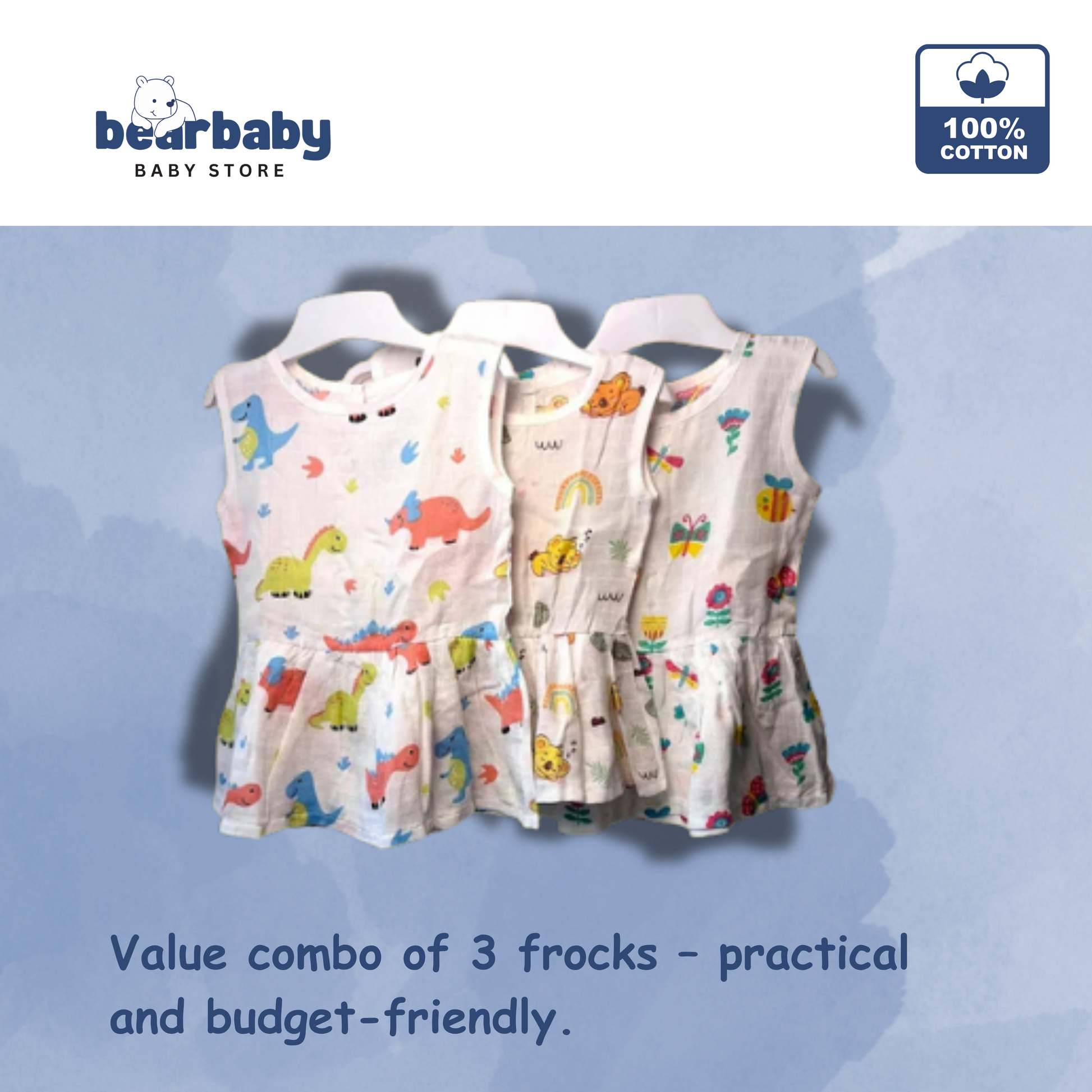 Baby Girl Organic Cotton Sleeveless Frock-Size6M-12M-Combo Pack of 3-Assorted Prints 1