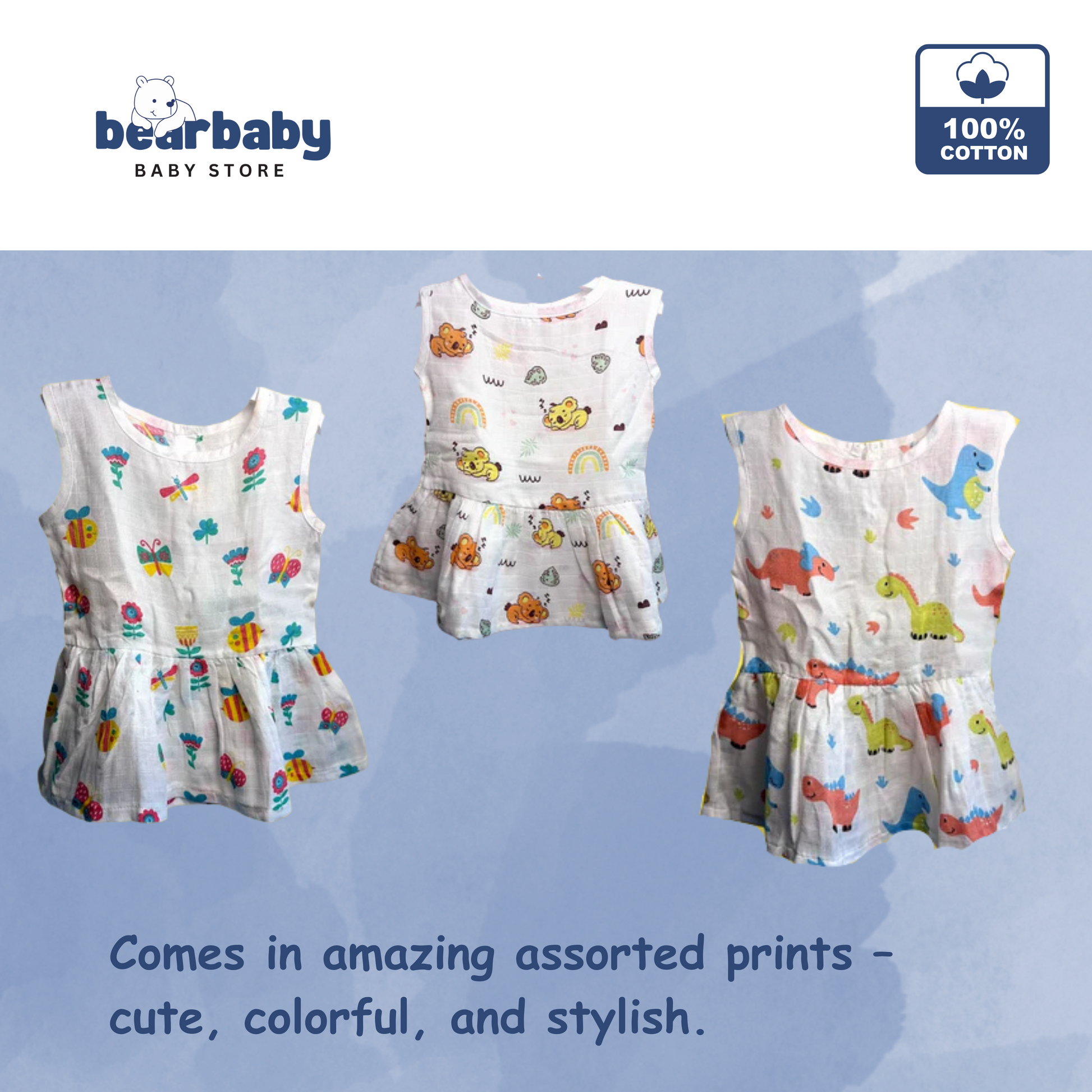 Baby Girl Organic Cotton Sleeveless Frock - Size 6M to 12M - Combo Pack of 3 - Assorted Prints