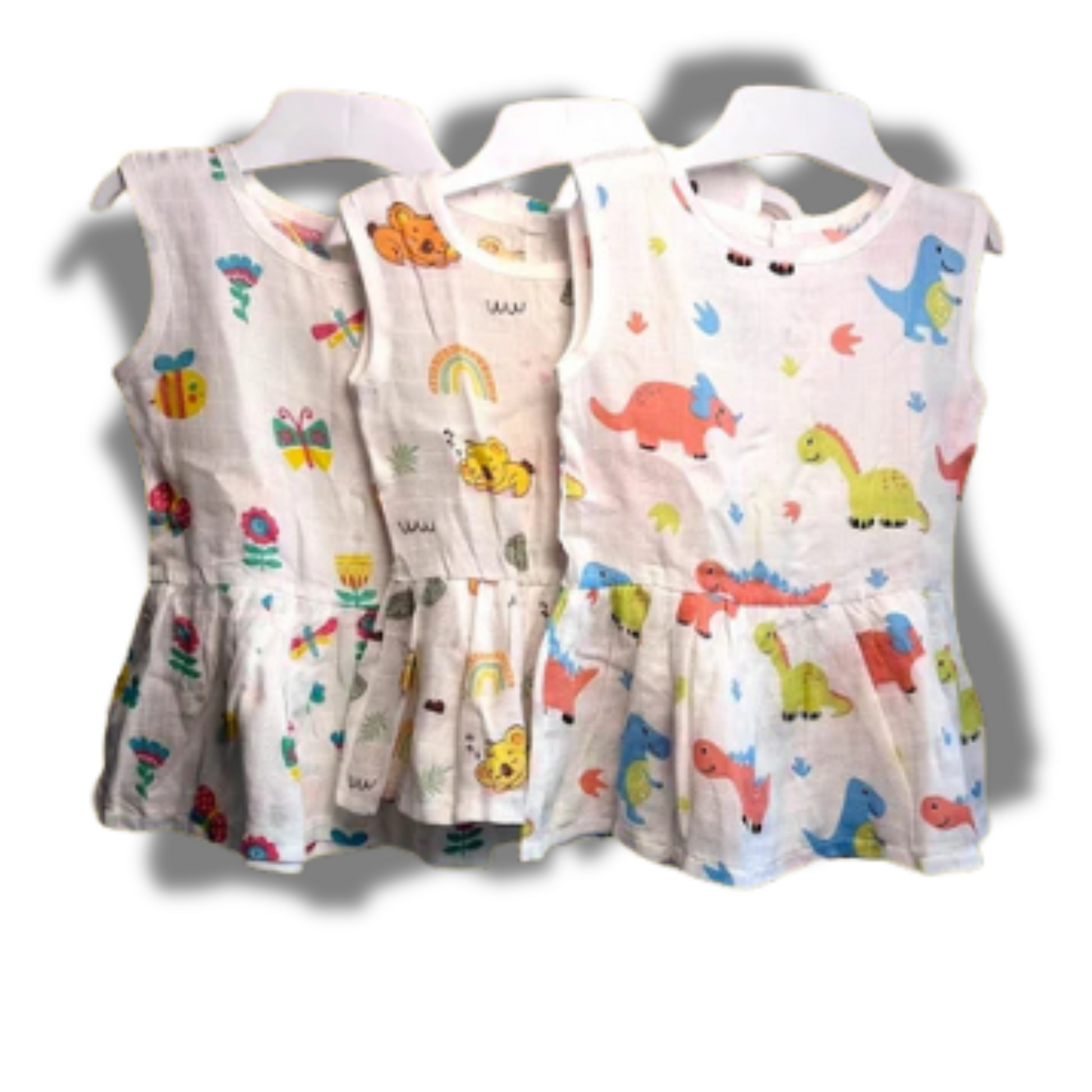 ⨠100% Organic Cotton ā ultra-soft, airy & gentle on delicate skin. šæ Eco-friendly & chemical-free ā safe for your baby, kind to the planet. š Sleeveless design ā keeps baby cool and comfortable. šØ Pack of 3 ā adorable assorted prints for a stylish wardrobe. š Easy-to-wear button closure ā hassle-free dressing. š Perfect for gifting ā a must-have for growing babies.