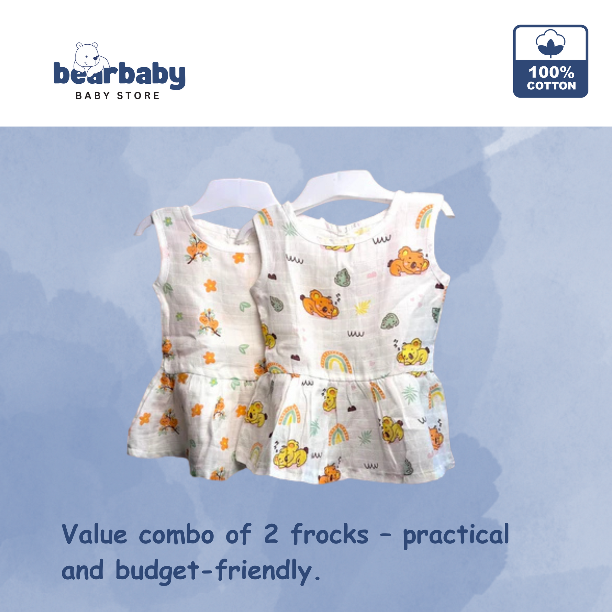 Baby Girl Organic Cotton Sleeveless Frock - Size 3M to 6M - Pack of 2 - Assorted Prints