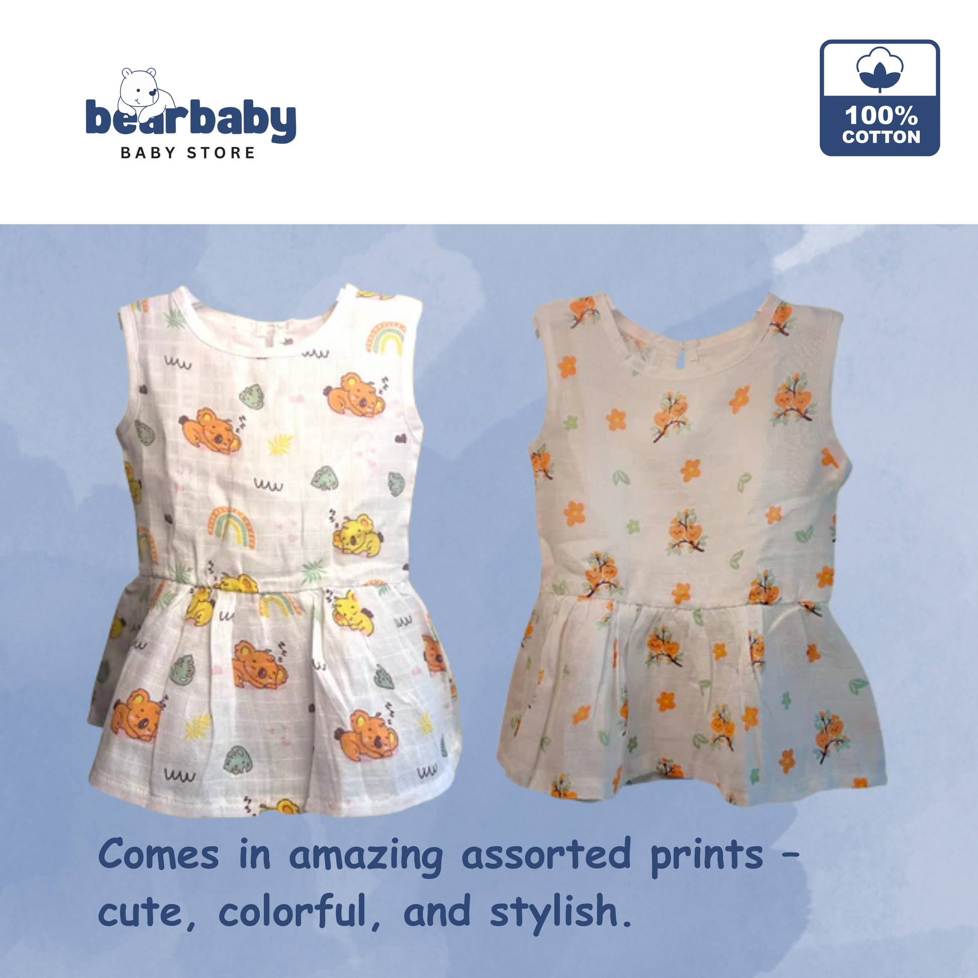 Baby Girl Organic Cotton Sleeveless Frock-Size(3M-6M)-Pack of 2-Assorted Prints 1