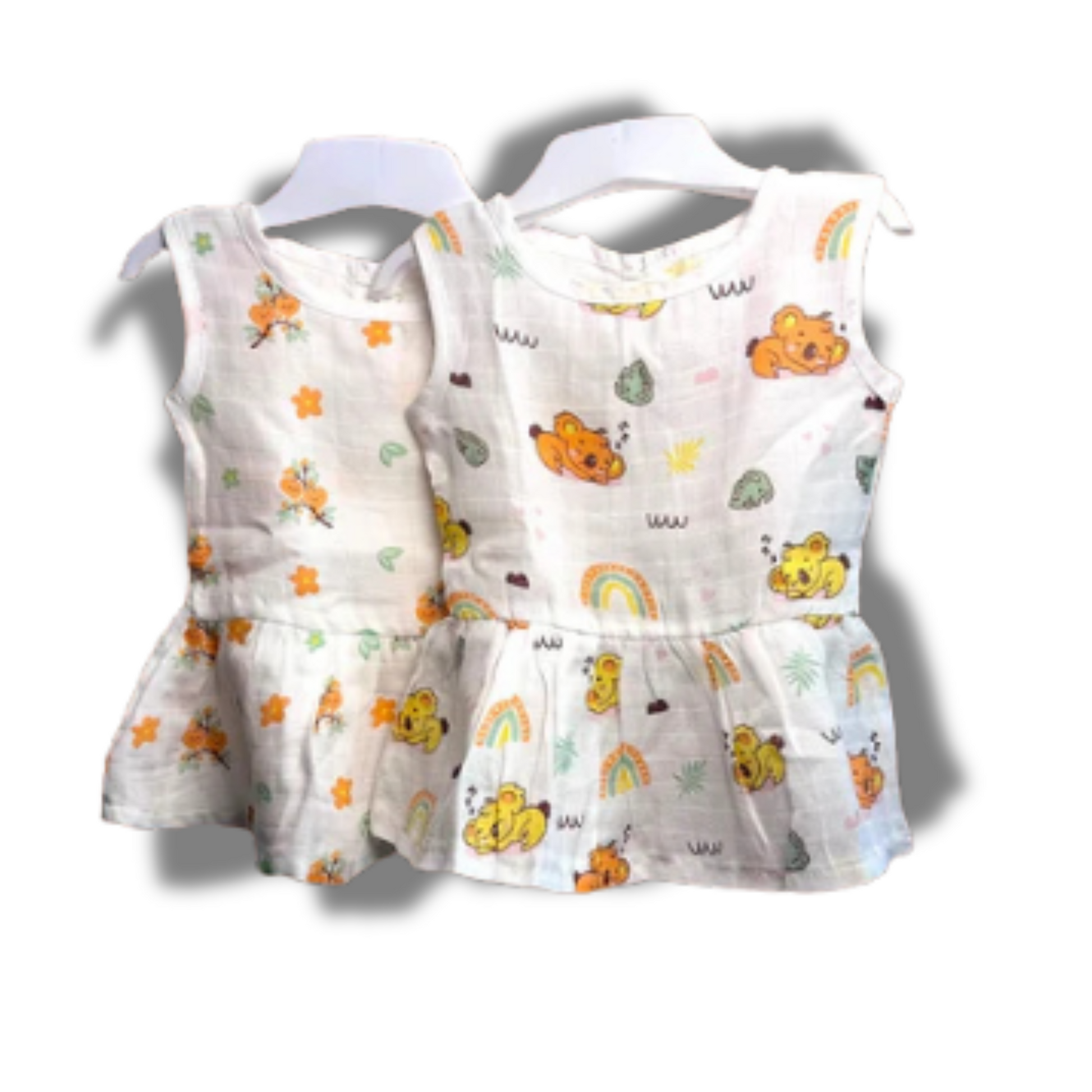 Dress your little princess in pure comfort and adorable style with this organic cotton sleeveless frock set! Designed for babies aged 3 to 6 months, these lightweight, breathable frocks ensure ease of movement, making them perfect for playtime, outings, and special occasions.