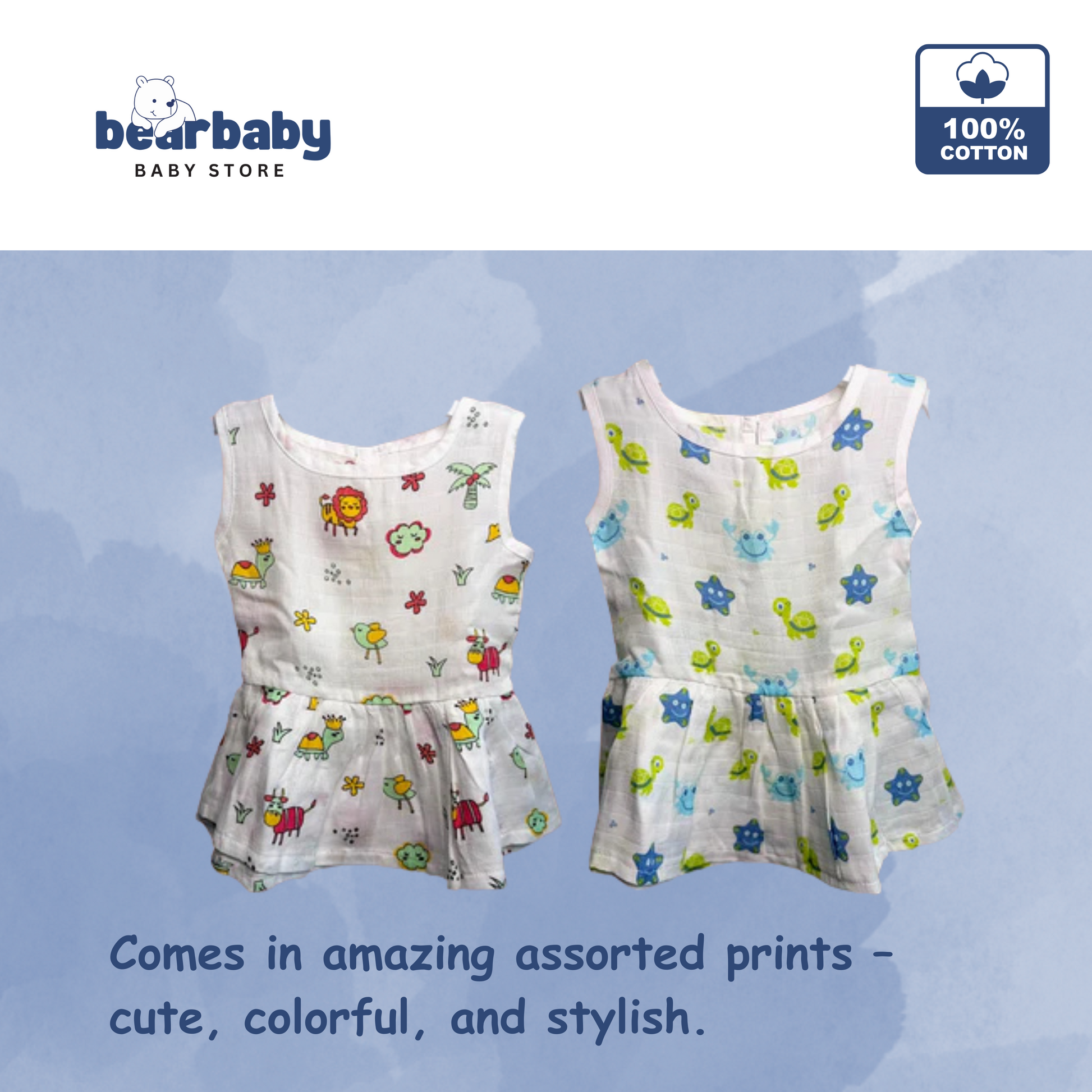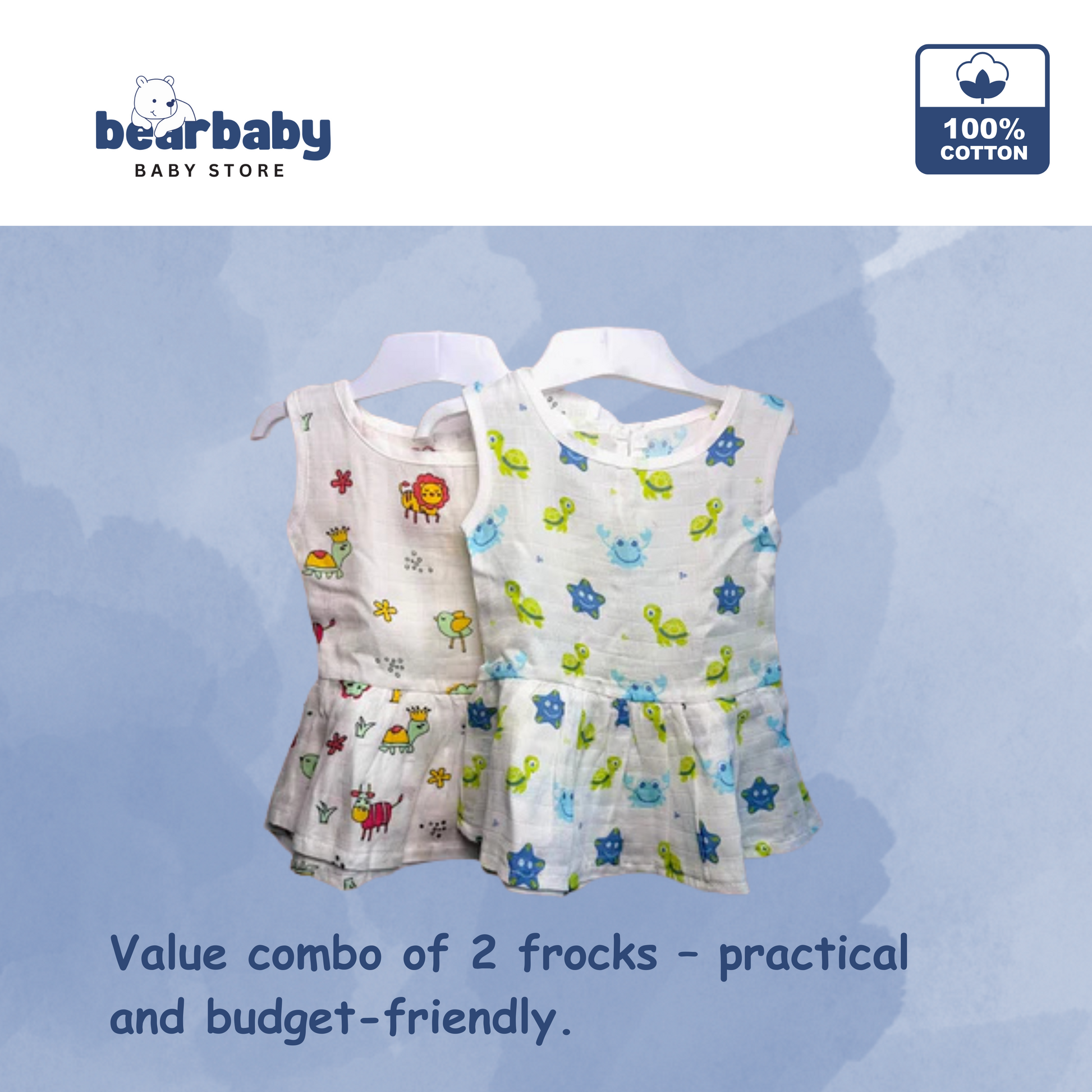 Baby Girl Organic Cotton Sleeveless Frock - Size 3M to 6M - Pack of 2 - Assorted Prints