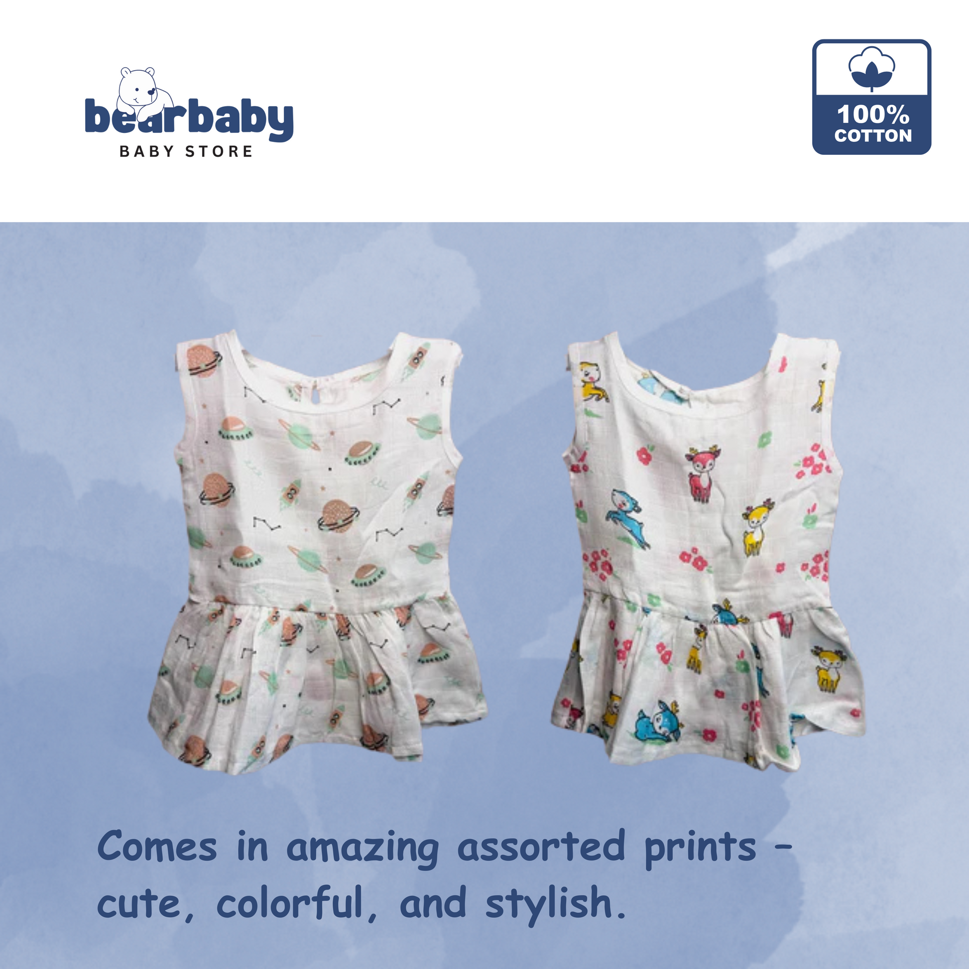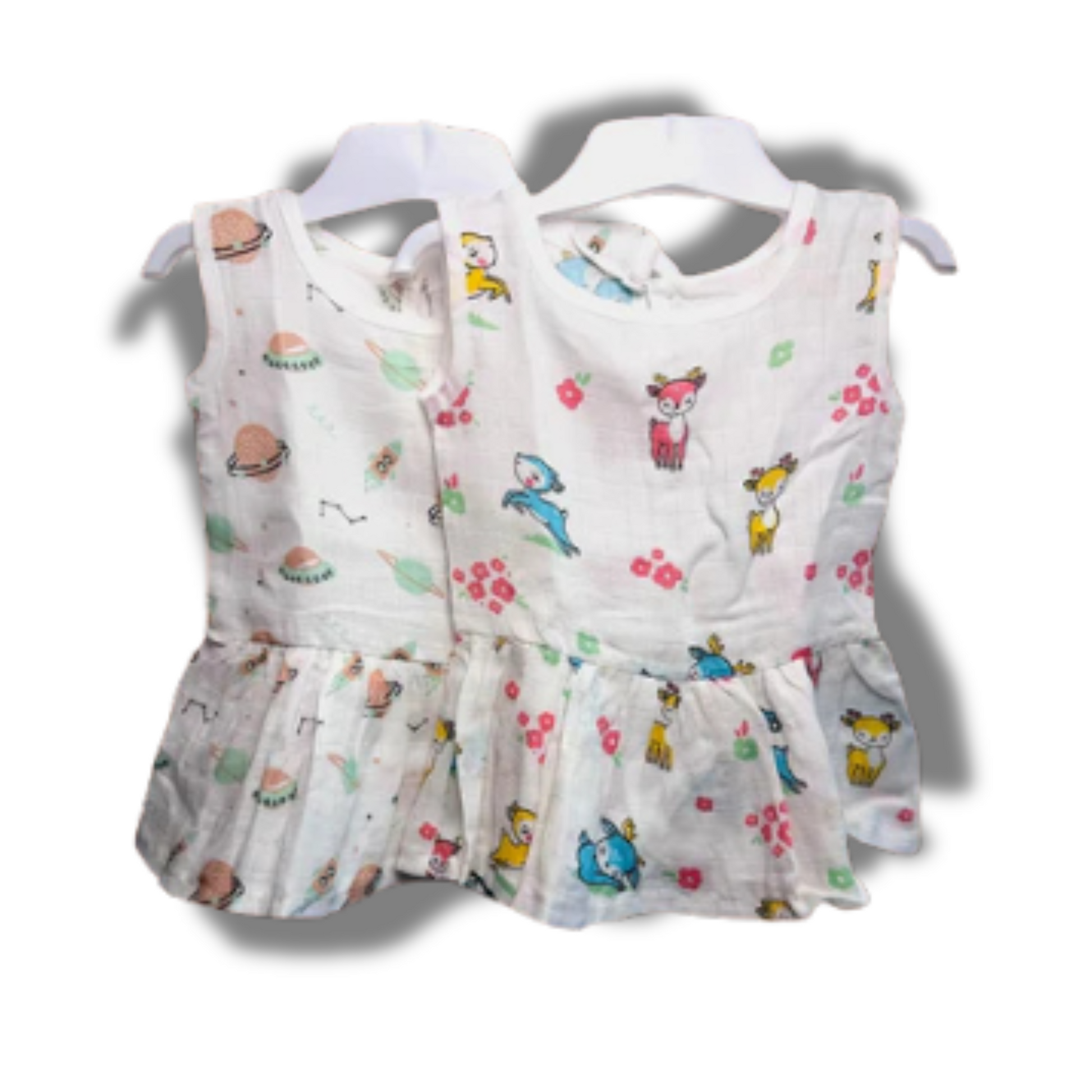 Baby Girl Organic Cotton Sleeveless Frock-Size(3M-6M)-Pack of 2-Assorted Prints 5