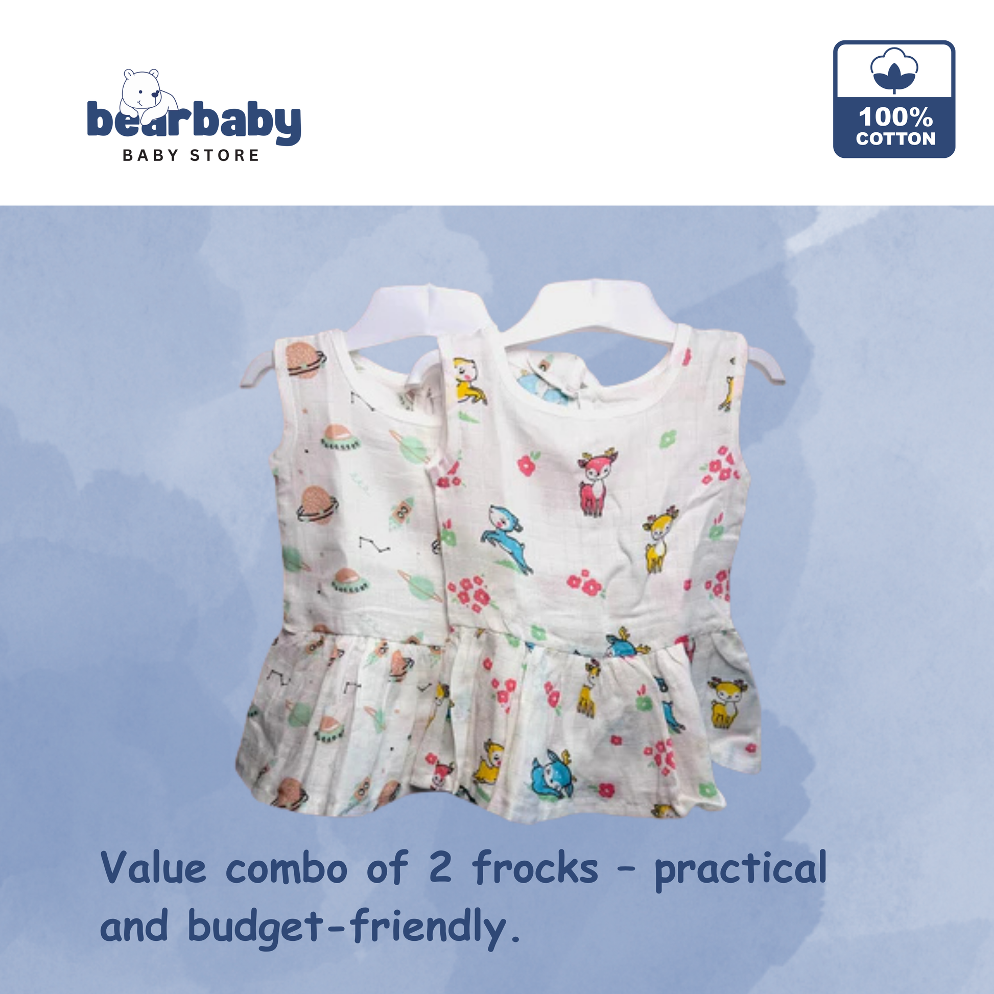 Baby Girl Organic Cotton Sleeveless Frock - Size 3M to 6M - Pack of 2 - Assorted Prints