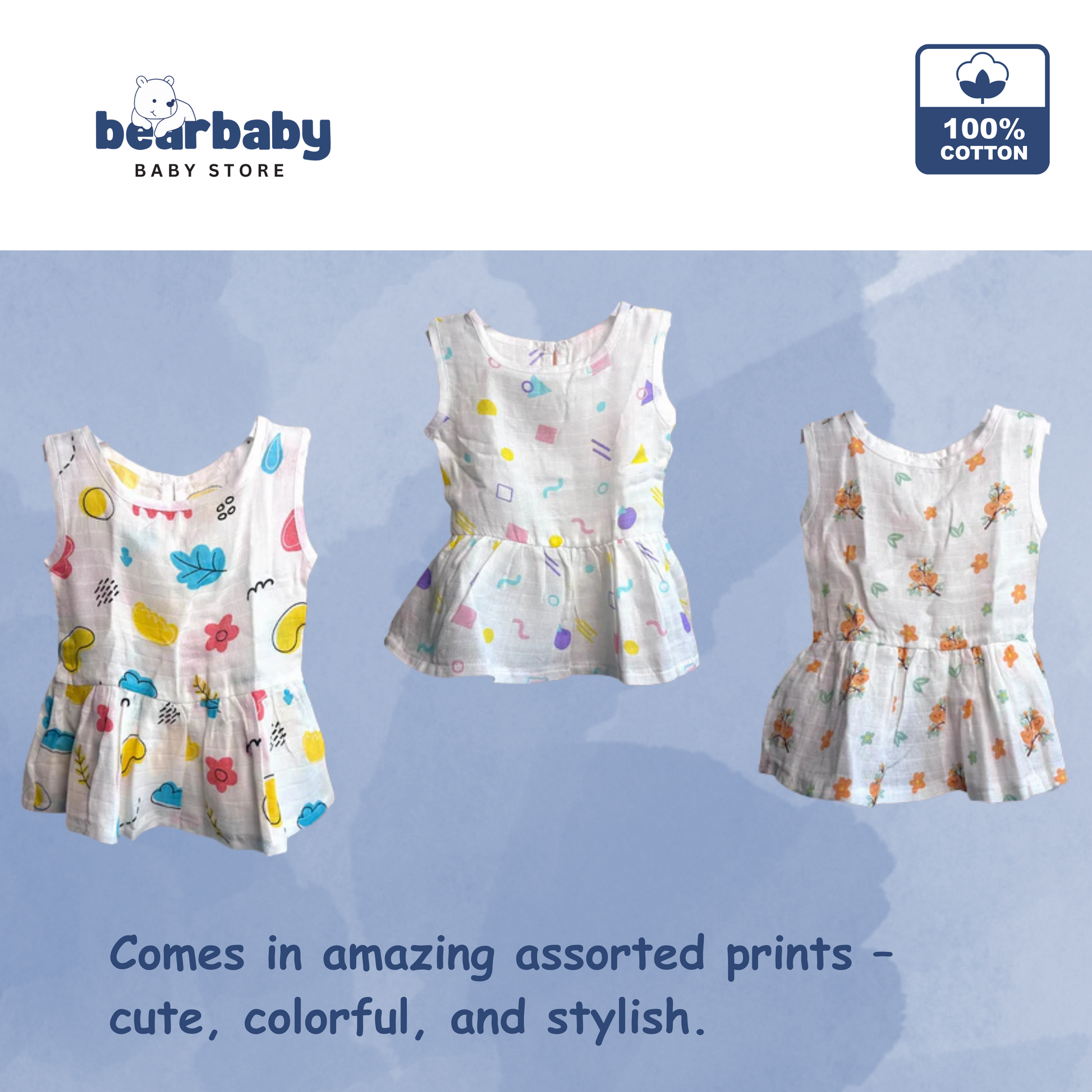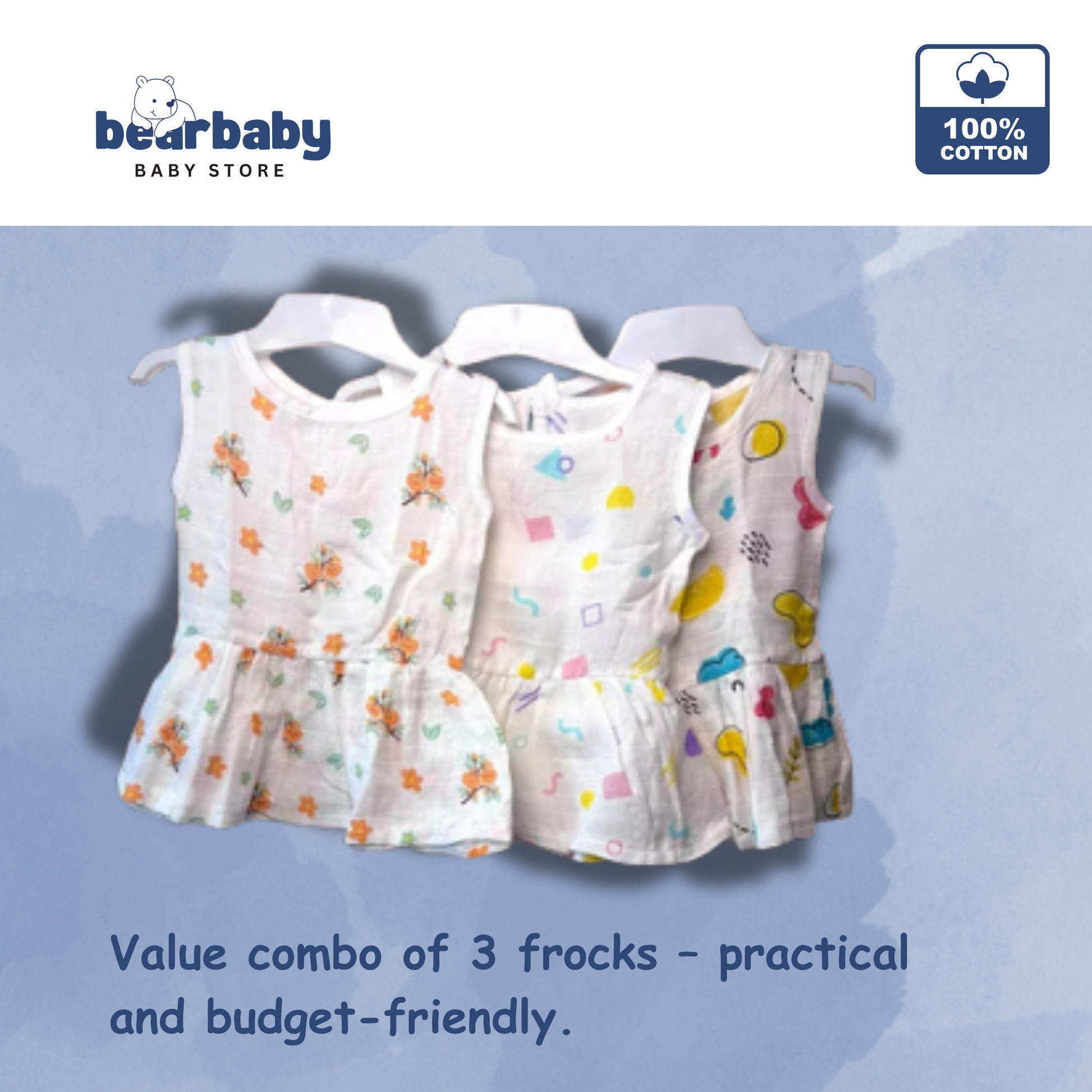 Baby Girl Organic Cotton Sleeveless Frock - Size 3M to 6M - Pack of 3 - Assorted Prints